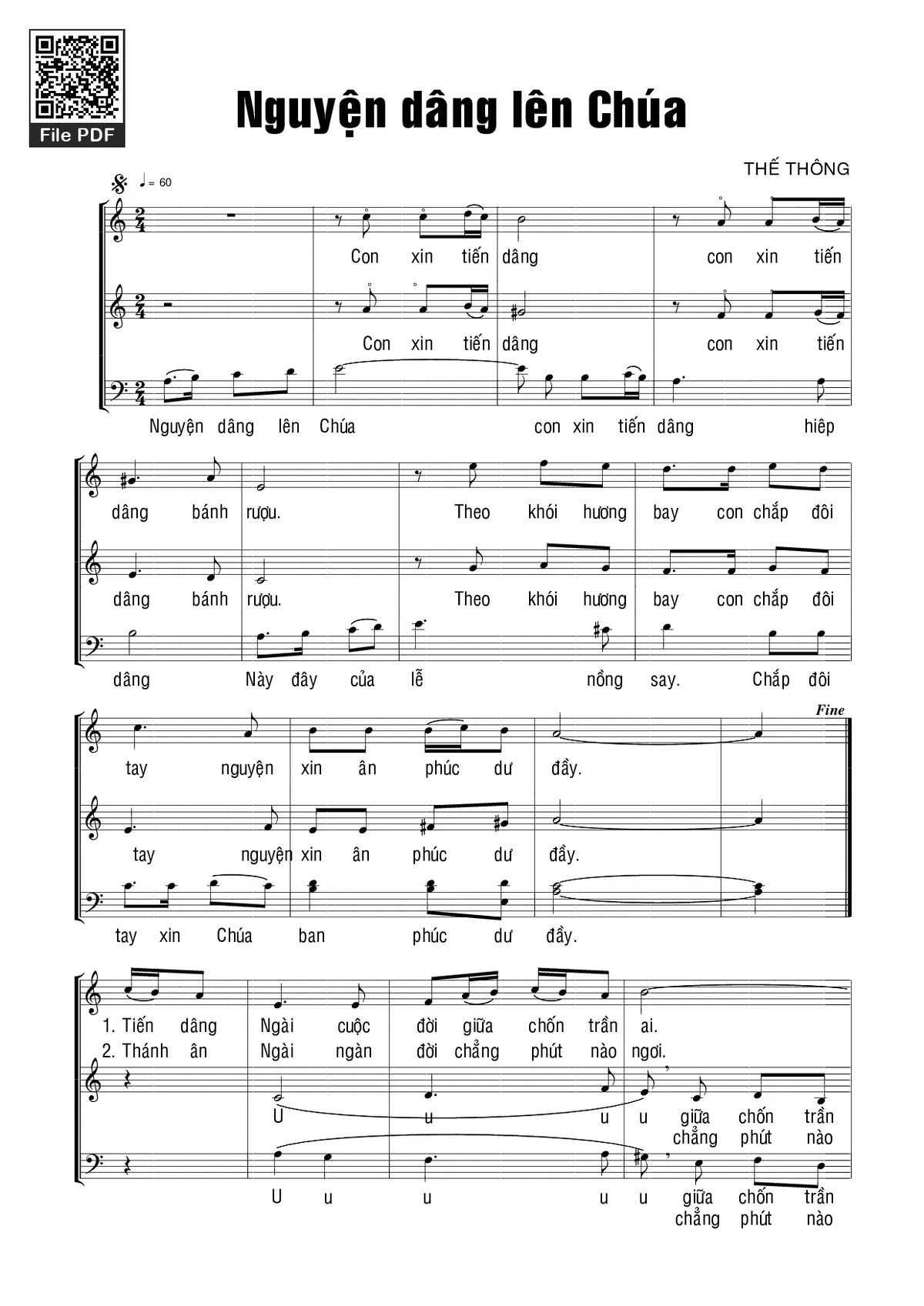 Điệp khúc. Con xin tiến dâng con xin tiến dâng bánh rượu. Theo khói hương bay con chắp đôi tay nguyện xin ân phúc dư đầy.