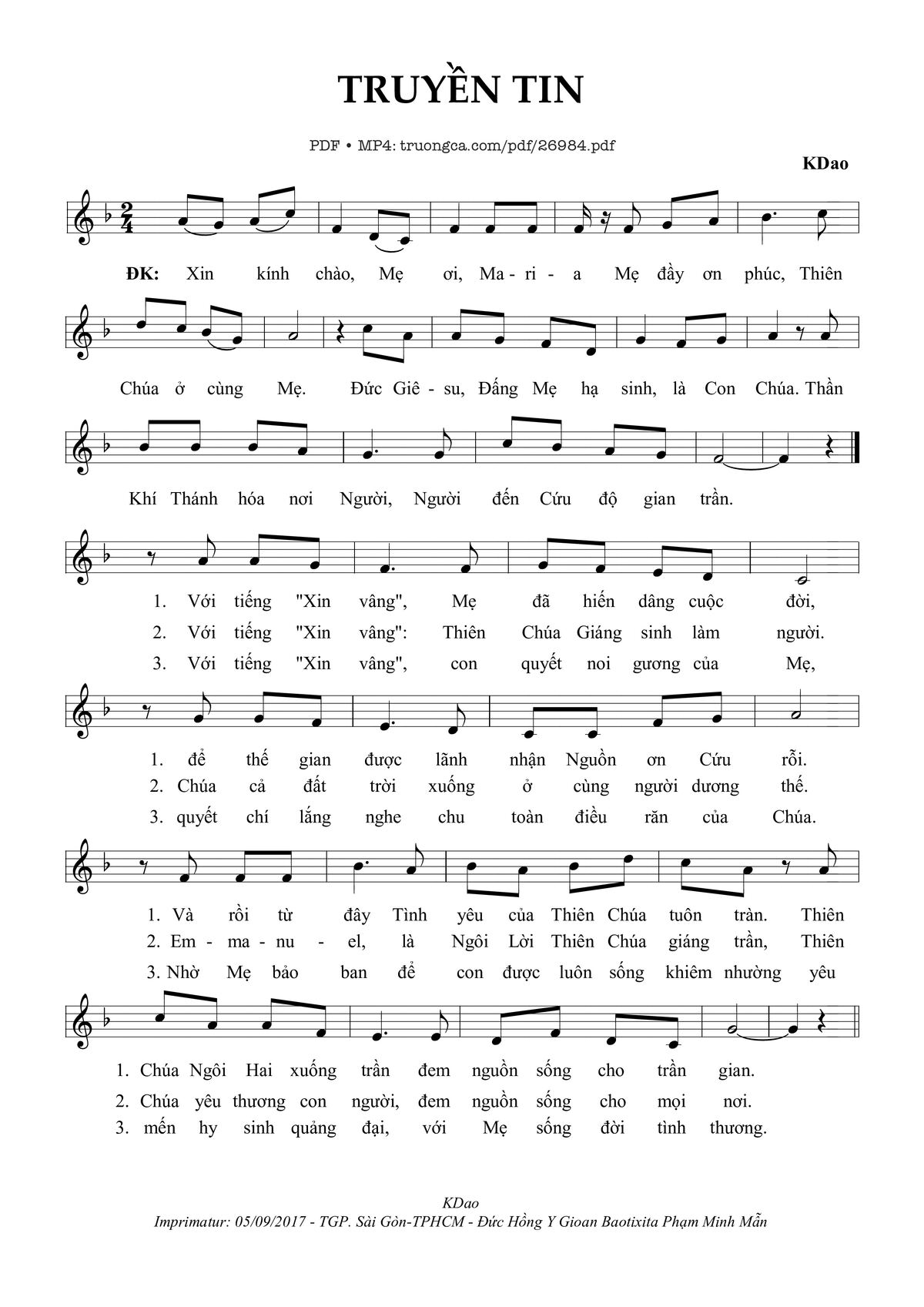 🌾 Imprimatur, Thông tin chuẩn nhận dùng trong phụng vụ Công Giáo: Nhập Lễ – Lễ Truyền Tin. Imprimatur – Tgp. Sài Gòn: 05.09.2017