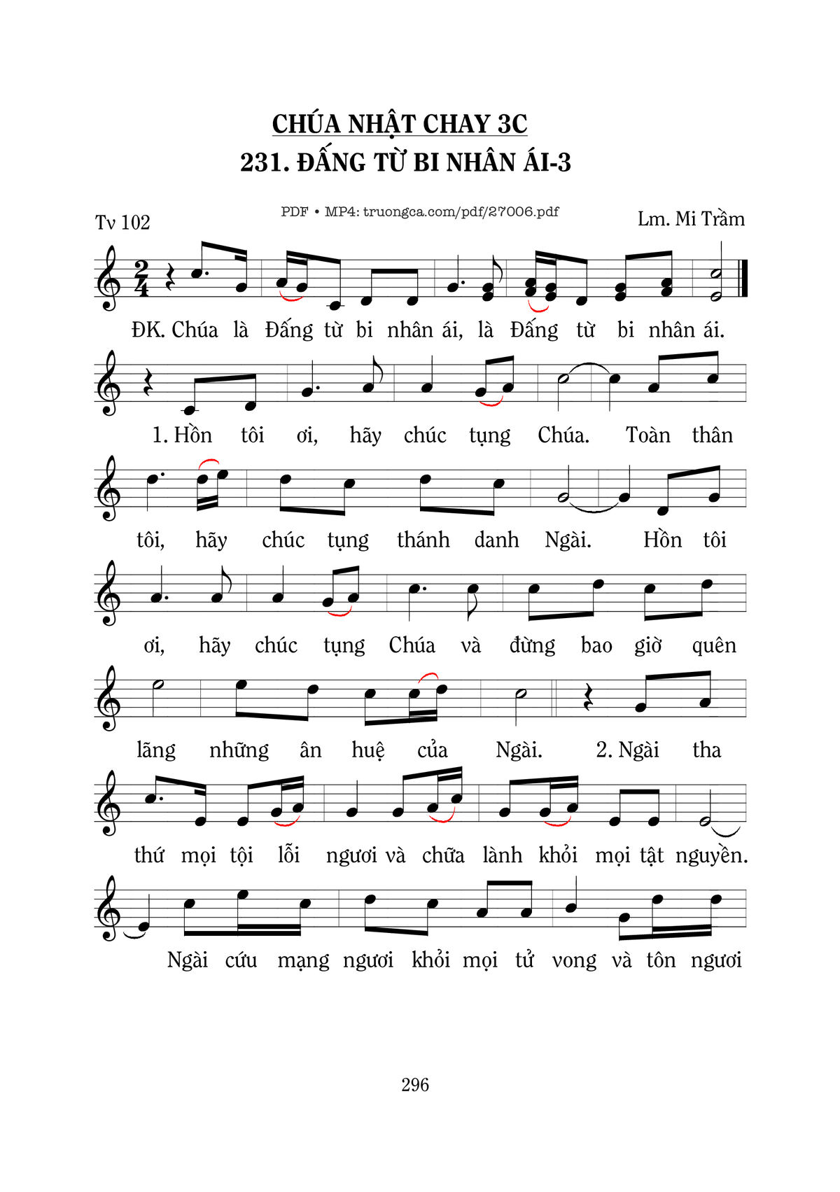 Mi Trầm Chúa là Đấng từ bi nhân ái là Đấng từ bi nhân ái [PDF] [Sheet] [Lời H.A] [Mp4/Midi]