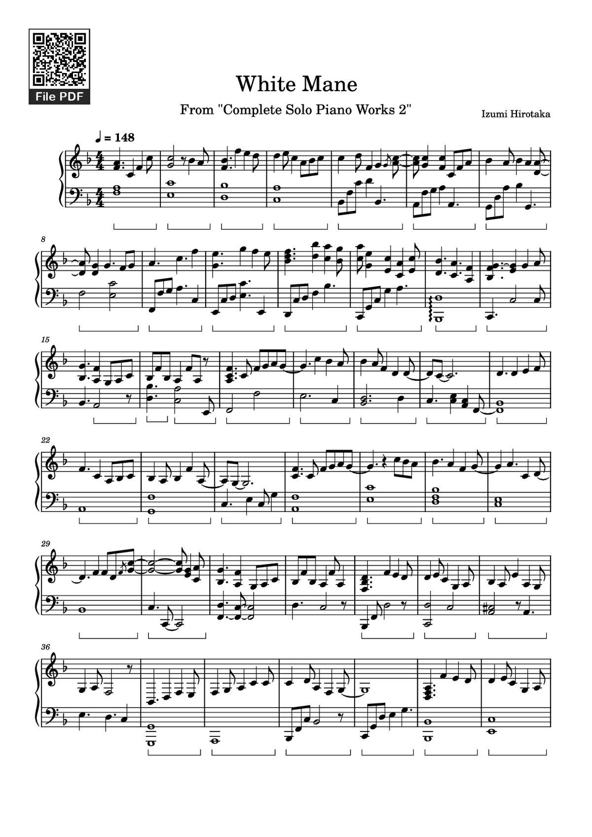 Download and print in PDF or MIDI free sheet music of White Mane - Izumi Hirotaka for White Mane by Izumi Hirotaka arranged by Behbo for Piano (Solo)