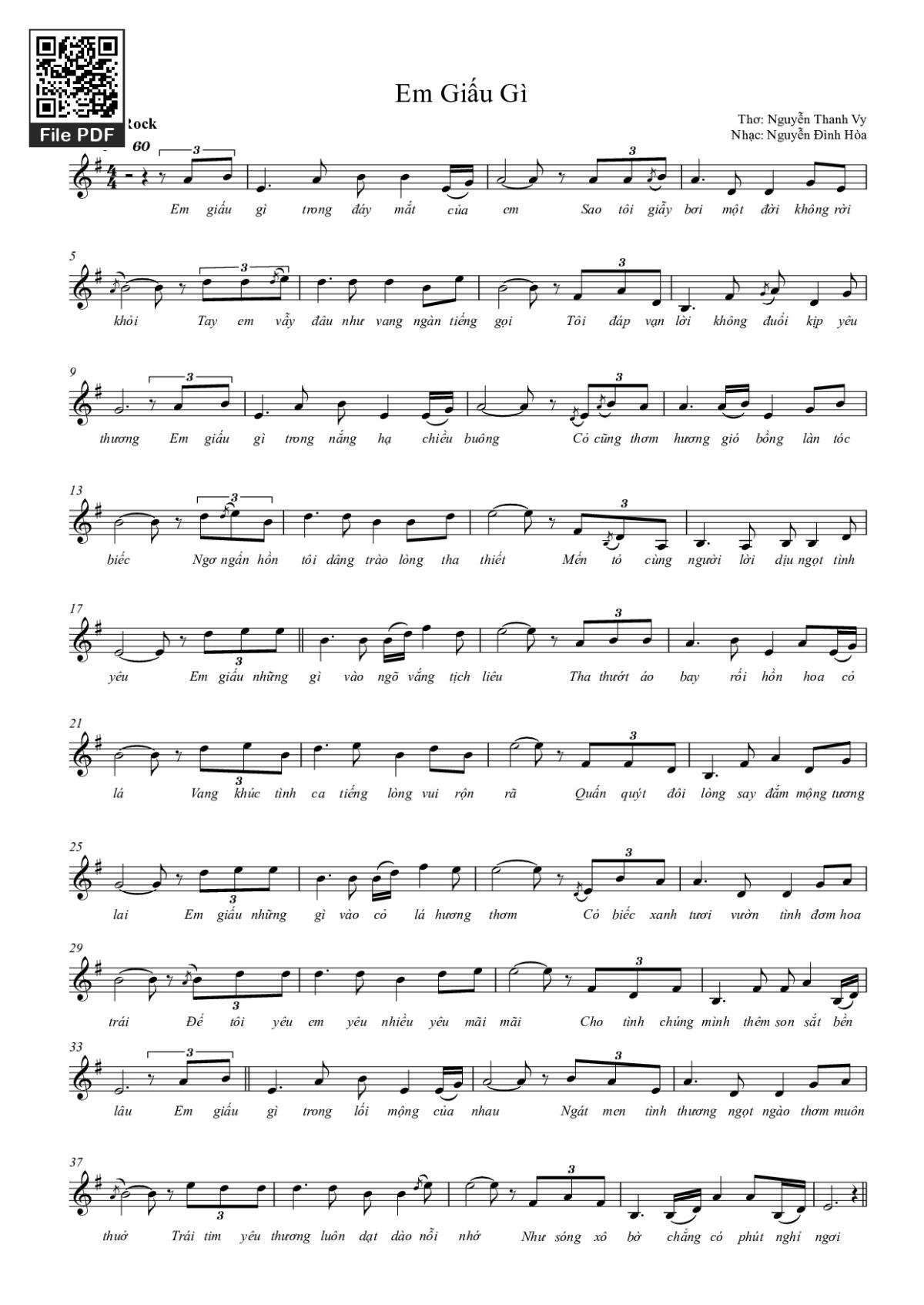 Nguyễn Đình Hòa Em giấu gì trong đáy mắt của em Sao tôi giẫy bơi một đời không rời khỏi [PDF] [Sheet] [Lời H.A] [Mp4/Midi]