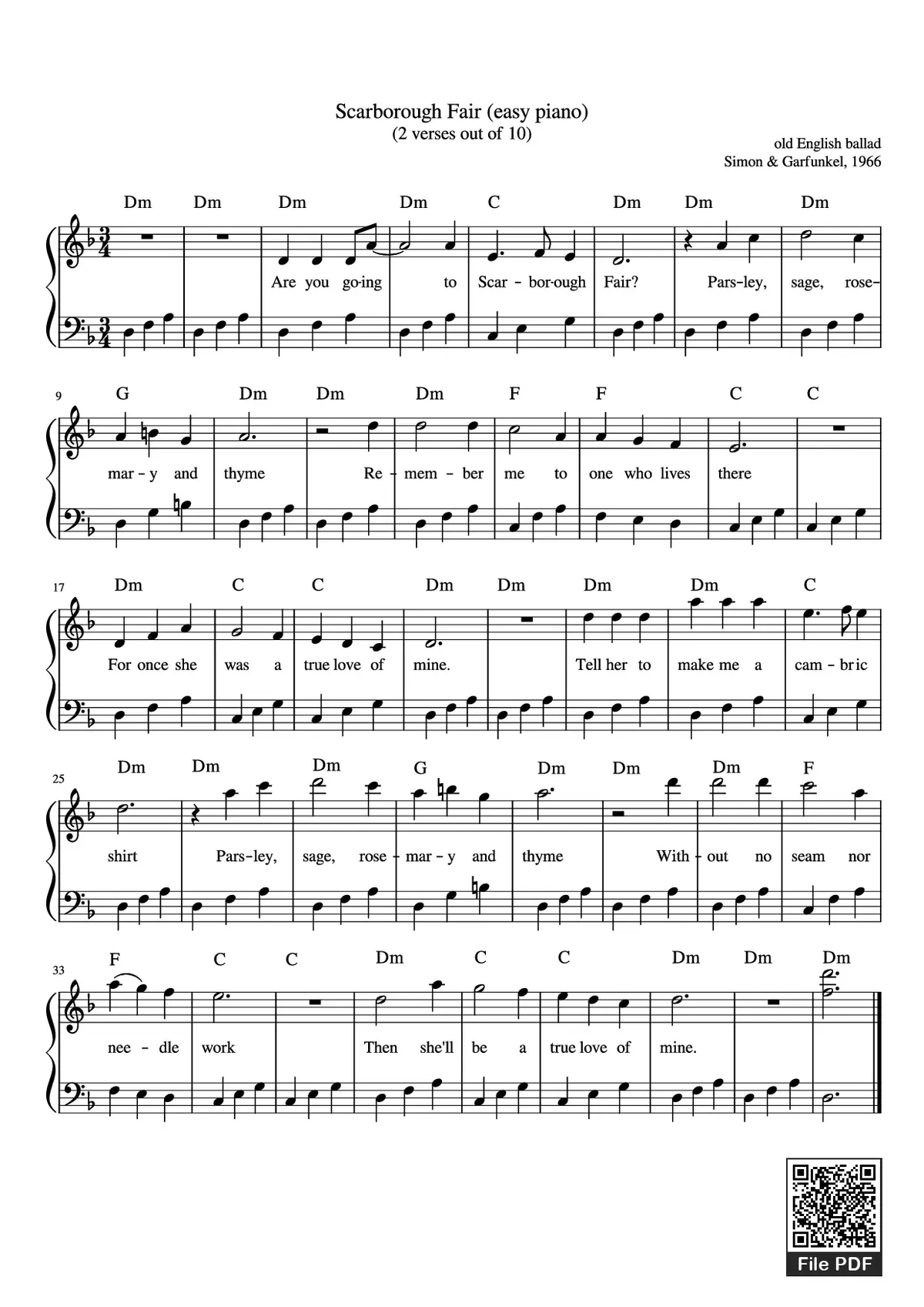 Các sheet PDF tương tự Scarborough Fair (easy piano) (2 verses out of 10):