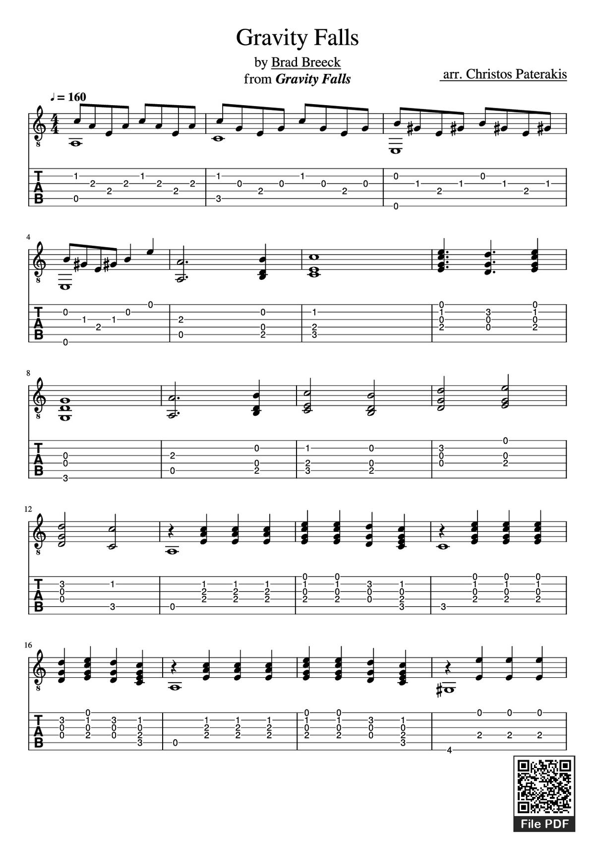 Các sheet PDF cùng tên Gravity Falls Guitar TAB:
