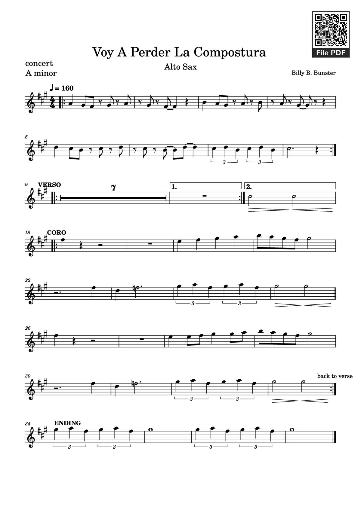 Download and print in PDF or MIDI free sheet music of Voy A Perder La Compostura - Billy Bunster for Voy A Perder La Compostura by Billy Bunster arranged by emcelina02 for Saxophone alto (Solo)