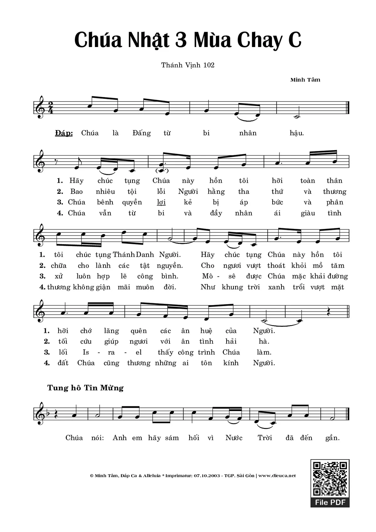 Các sheet PDF cùng tên Thánh Vịnh 102 (Chúa Nhật 3 Mùa Chay C):