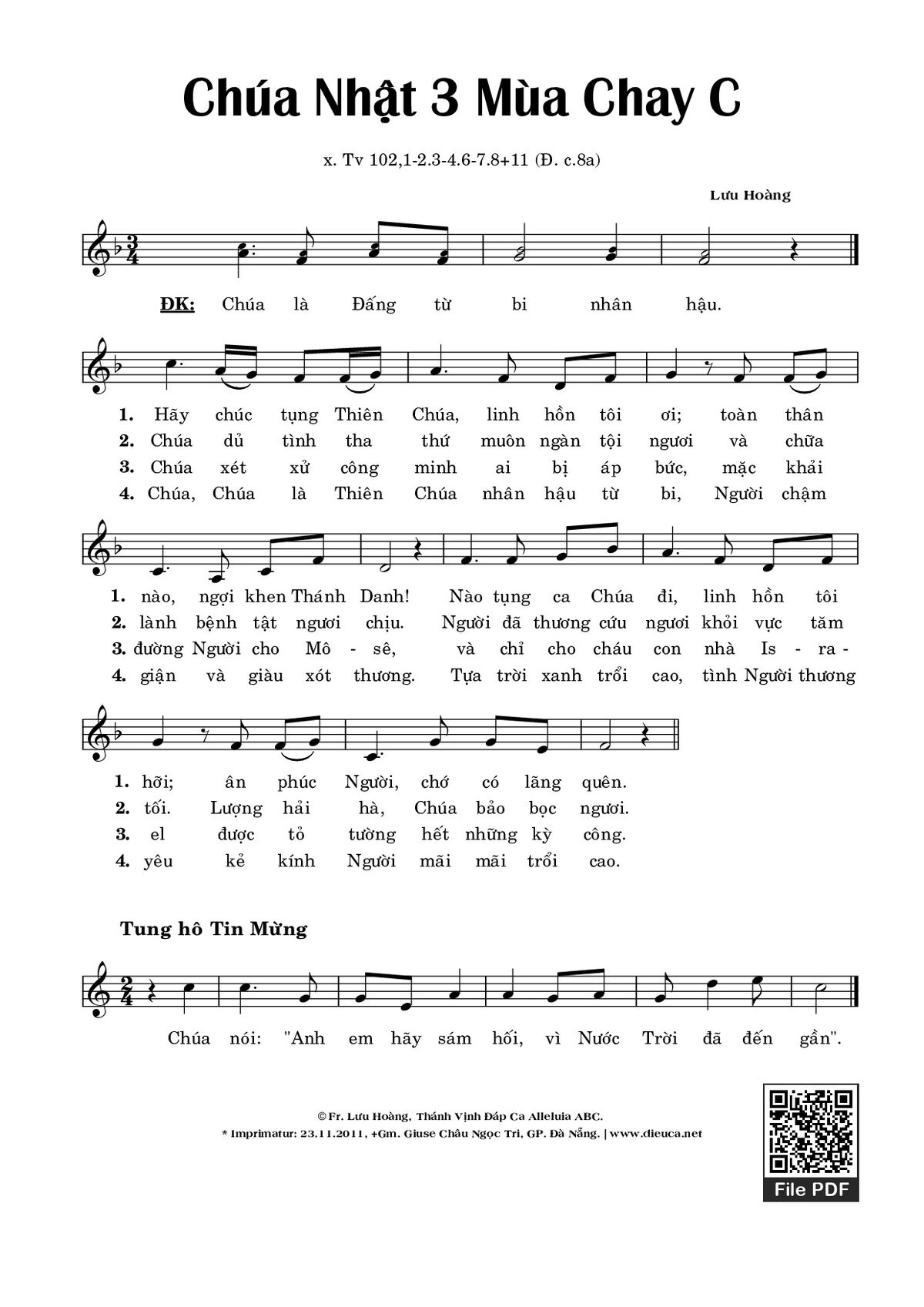 Thể loại 🌾 Nhạc Thánh Ca, 🌾 Thánh Vịnh - Đáp Ca, 🌾 Thánh ca Imprimatur, ⛪ Chúa Nhật 3 Mùa Chay C, 🌾 Thánh Vịnh 102