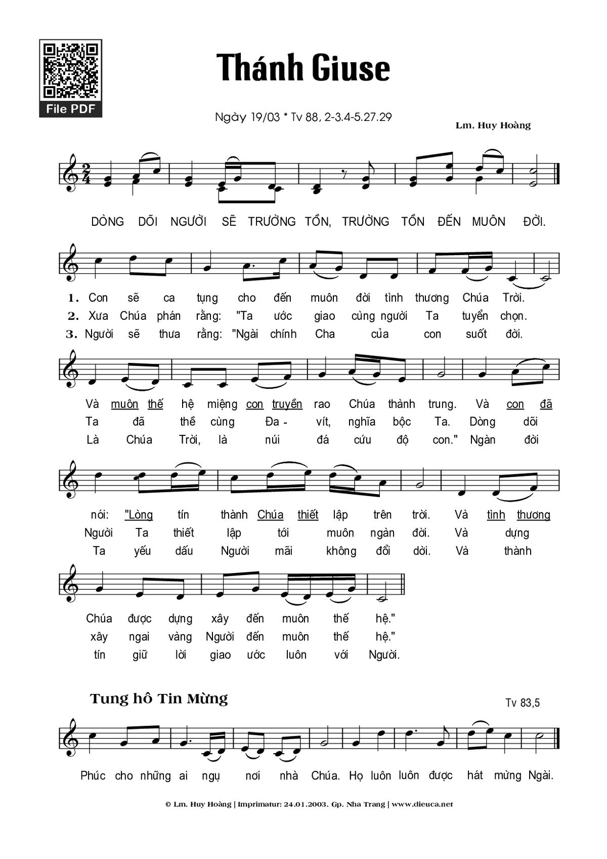 Các sheet PDF tương tự Thánh Vịnh 88 (Thánh Giu-se Ngày 19/3):