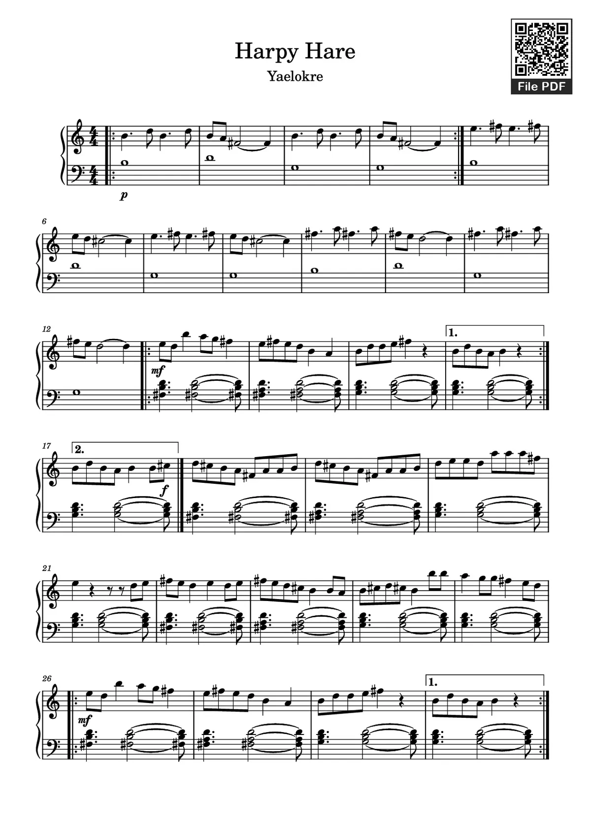 Download and print in PDF or MIDI free sheet music of Harpy Hare - Yaelokre for Harpy Hare by Yaelokre arranged by arsi) for Piano (Solo)