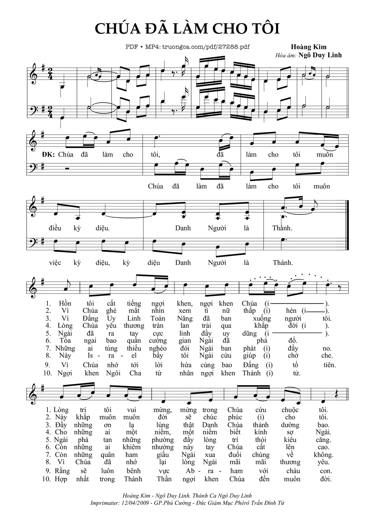 Điệp khúc. Chúa đã làm cho tôi, (Chúa đã làm) đã làm cho tôi đủ điều kỳ diệu. (kỳ diệu) Danh Người là Thánh.