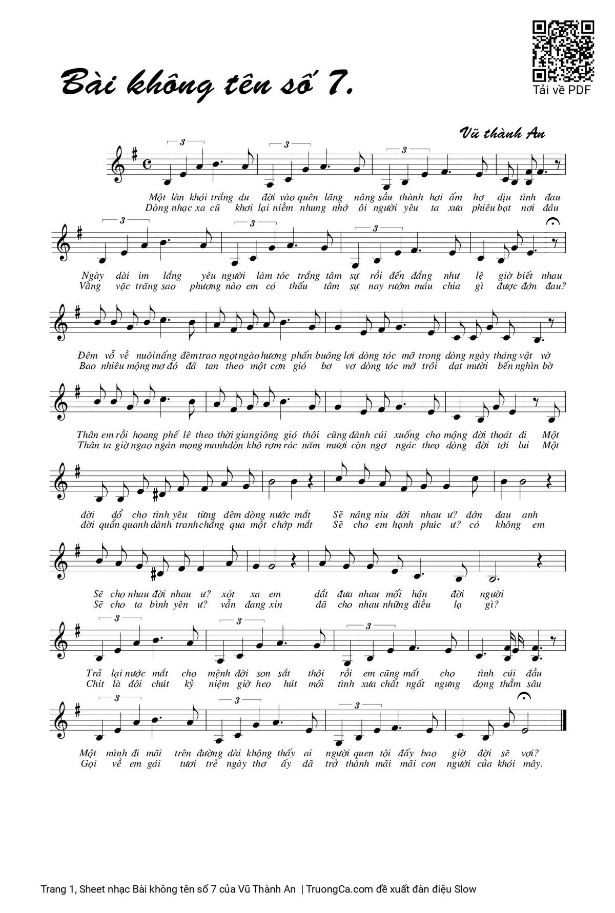 Vũ Thành An Môt làn khói trắng ru đời vào quên lãng [PDF] [Sheet] [Lời H.A] [Mp4/Midi] [Lời bình - giai thoại]