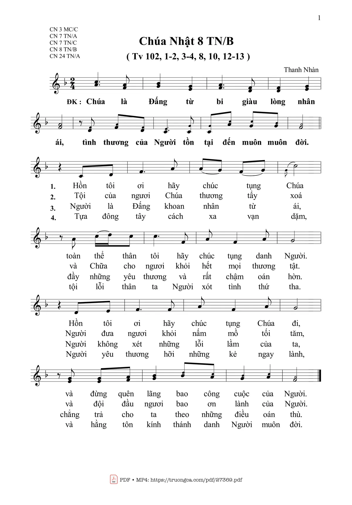 Các sheet PDF tương tự Thánh Vịnh 102, Chúa Nhật 8B Thường Niên:
