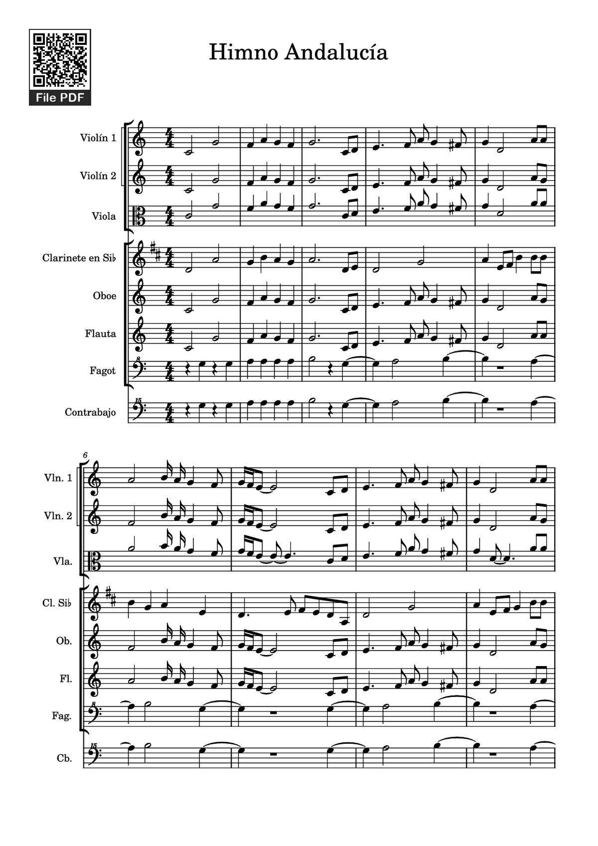 Download and print in PDF or MIDI free sheet music of HIMNO DE ANDALUCÍA - Blas Infante for Himno De Andalucía by Blas Infante arranged by Ivan Montes Mota for Flute, Oboe, Clarinet in b-flat, Bassoon & more instruments (Mixed Ensemble)