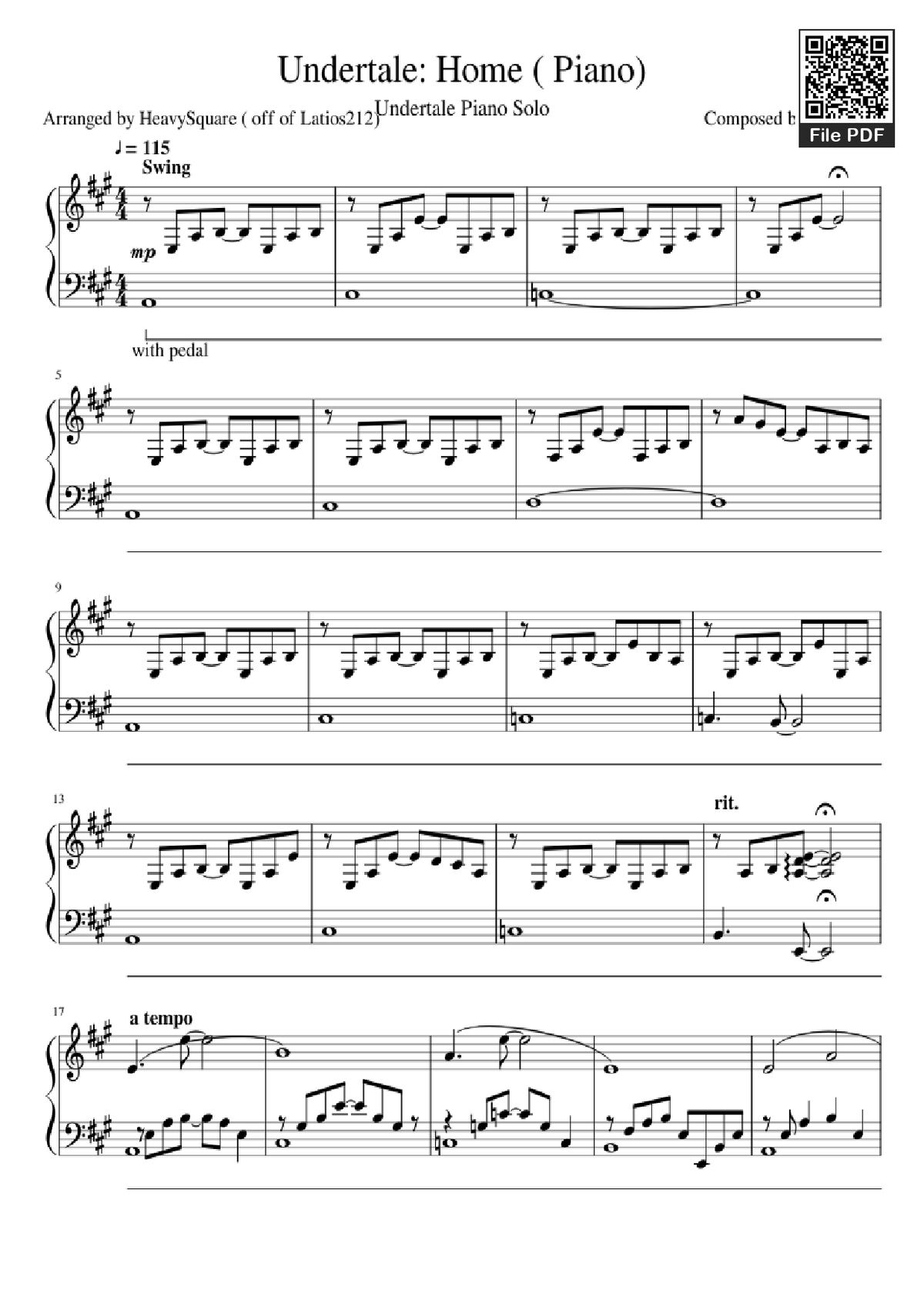 Download and print in PDF or MIDI free sheet music of Home - Toby Fox for Home by Toby Fox arranged by HeavySquare for Piano (Solo)