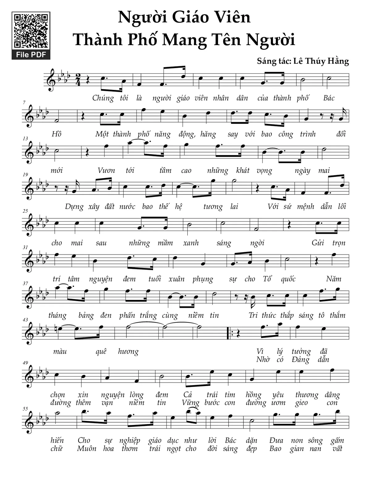 Lê Thúy Hằng Chúng tôi là người giáo viên nhân dân của thành phố Bác Hồ [PDF] [Sheet] [Lời H.A] [Mp4/Midi]