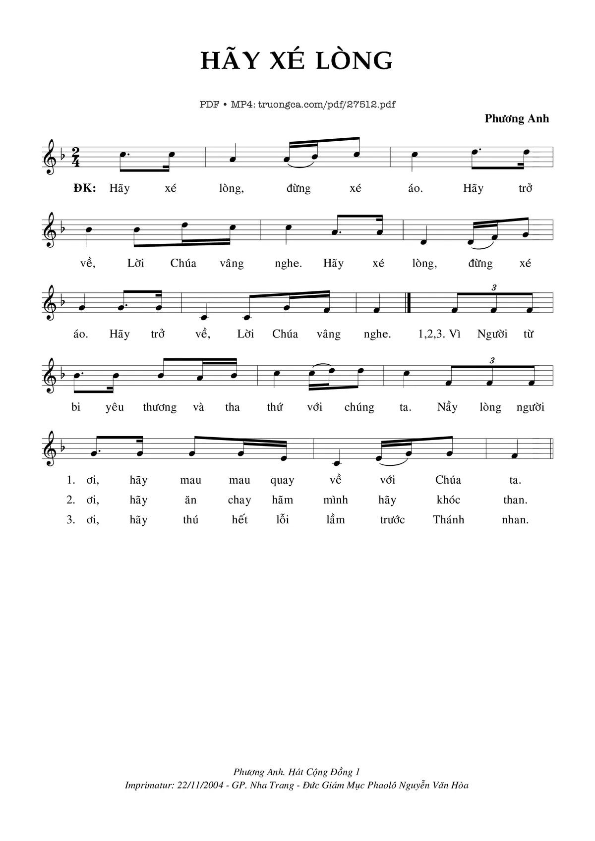 Phương Anh Hãy xé lòng đừng xé áo Hãy trở về Lời Chúa vâng nghe [PDF] [Sheet] [Lời H.A] [Mp4/Midi]