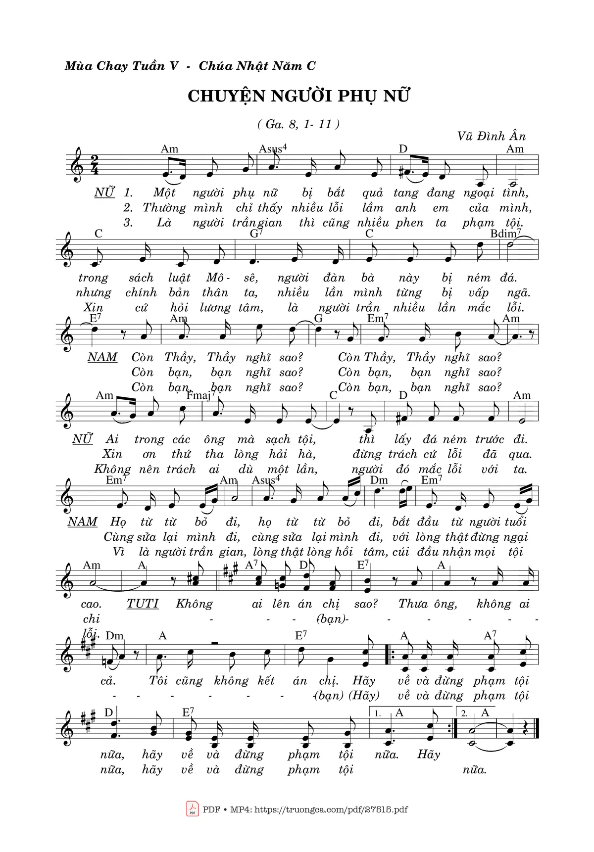 Vũ Đình Ân Hiệp Lễ Chúa Nhật C Mùa Chay Một người phụ nữ bị bắt quả tang đang ngoại tình [PDF] [Sheet] [Lời H.A] [Mp4/Midi]
