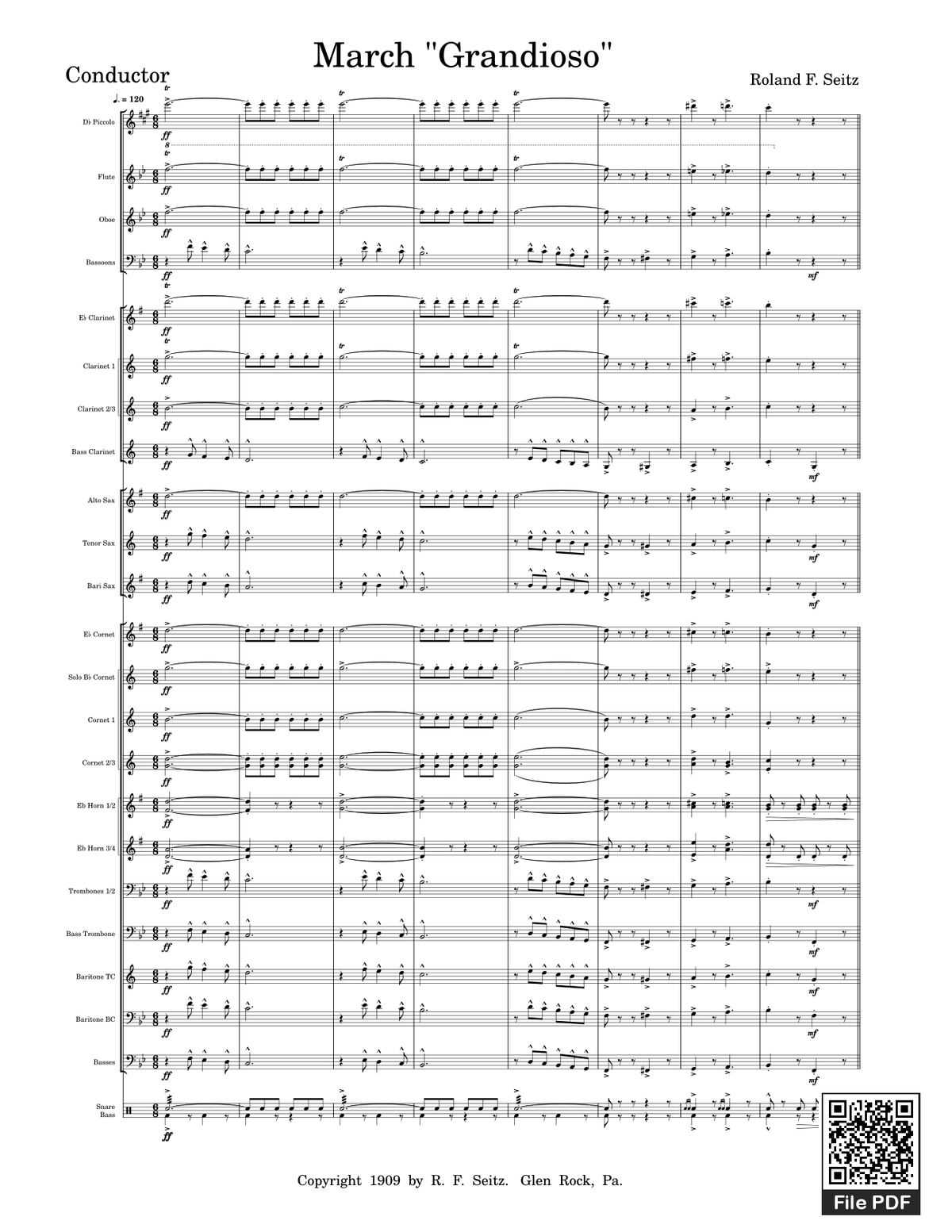 Phần nghe hát March "Grandioso" (Redhills) được nhúng từ Youtube, Musescore hoặc link ngoài và chịu sự kiểm soát bản quyền của bên thứ ba đó, vì vậy có thể bị xóa hoặc chèn quảng cáo bất kỳ lúc nào. Nếu bạn không nghe - xem được ca sĩ hát tức là đã bị Youtube hoặc Musescore kiểm soát.