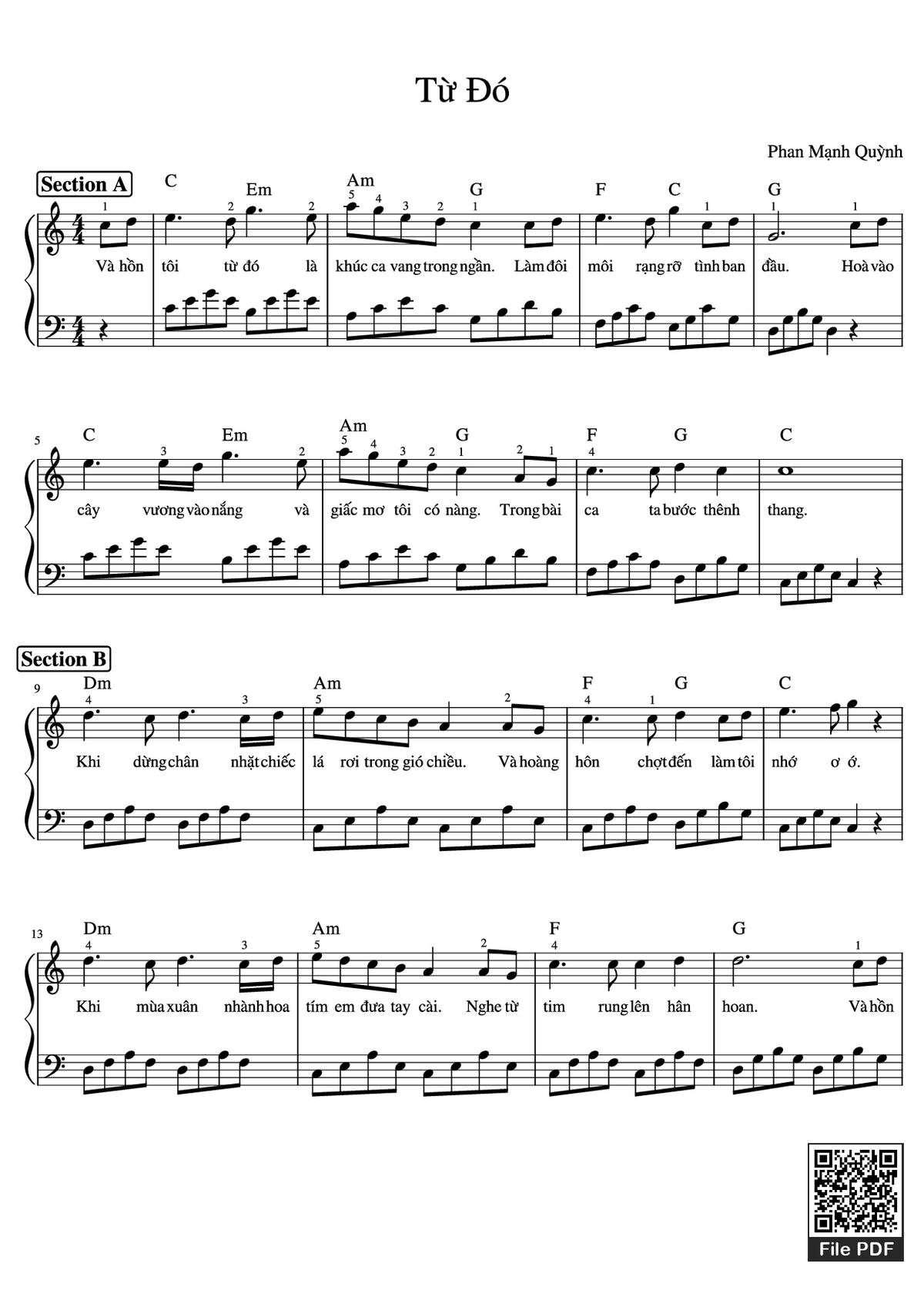 Phần đàn mẫu Từ Đó Piano (Phan Mạnh Quỳnh) được nhúng từ Youtube, Musescore hoặc link ngoài và chịu sự kiểm soát bản quyền của bên thứ ba đó, vì vậy có thể bị xóa hoặc chèn quảng cáo bất kỳ lúc nào. Nếu bạn không nghe - xem được phần đàn mẫu hát mẫu tức là đã bị Youtube/Musescore kiểm soát.