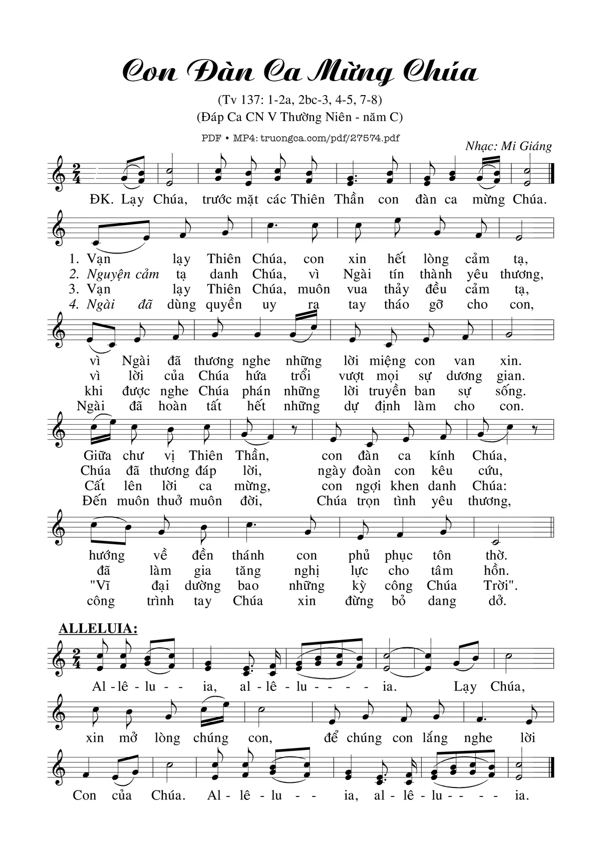 Mi Giáng Lạy Chúa Trước mặt các Thiên Thần con đàn ca mừng Chúa [PDF] [Sheet] [Lời H.A] [Mp4/Midi]