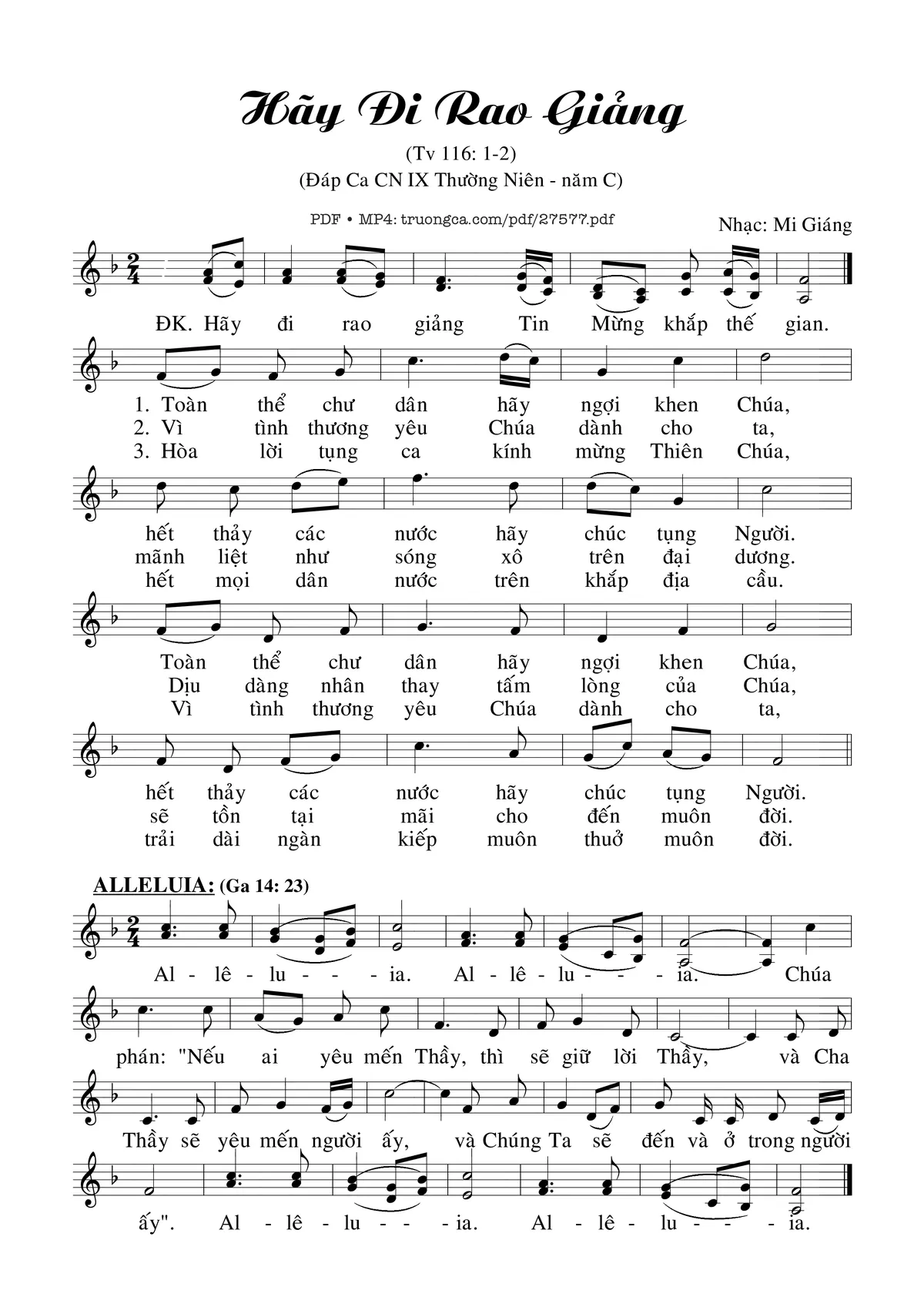 Mi Giáng Hãy đi rao giảng Tin Mừng khắp thế gian [PDF] [Sheet] [Lời H.A] [Mp4/Midi]