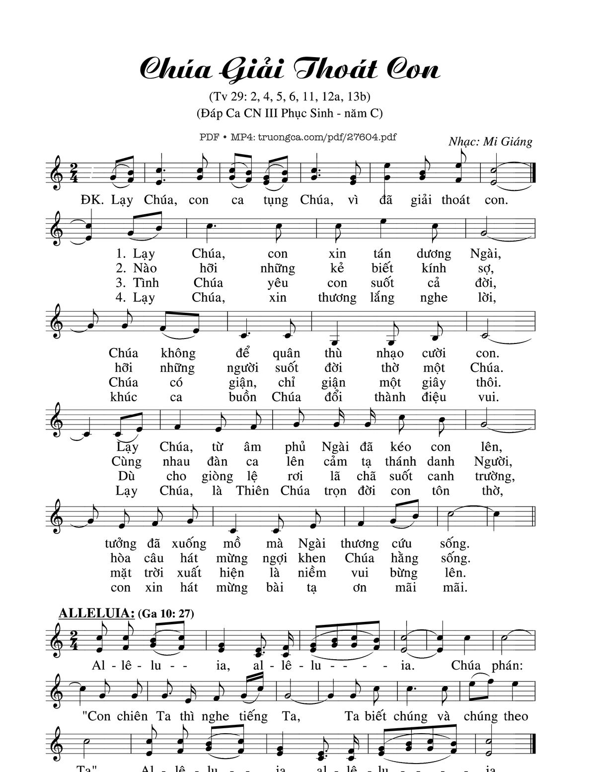 Mi Giáng Lạy Chúa con ca tụng Chúa vì đã giải thoát con [PDF] [Sheet] [Lời H.A] [Mp4/Midi]