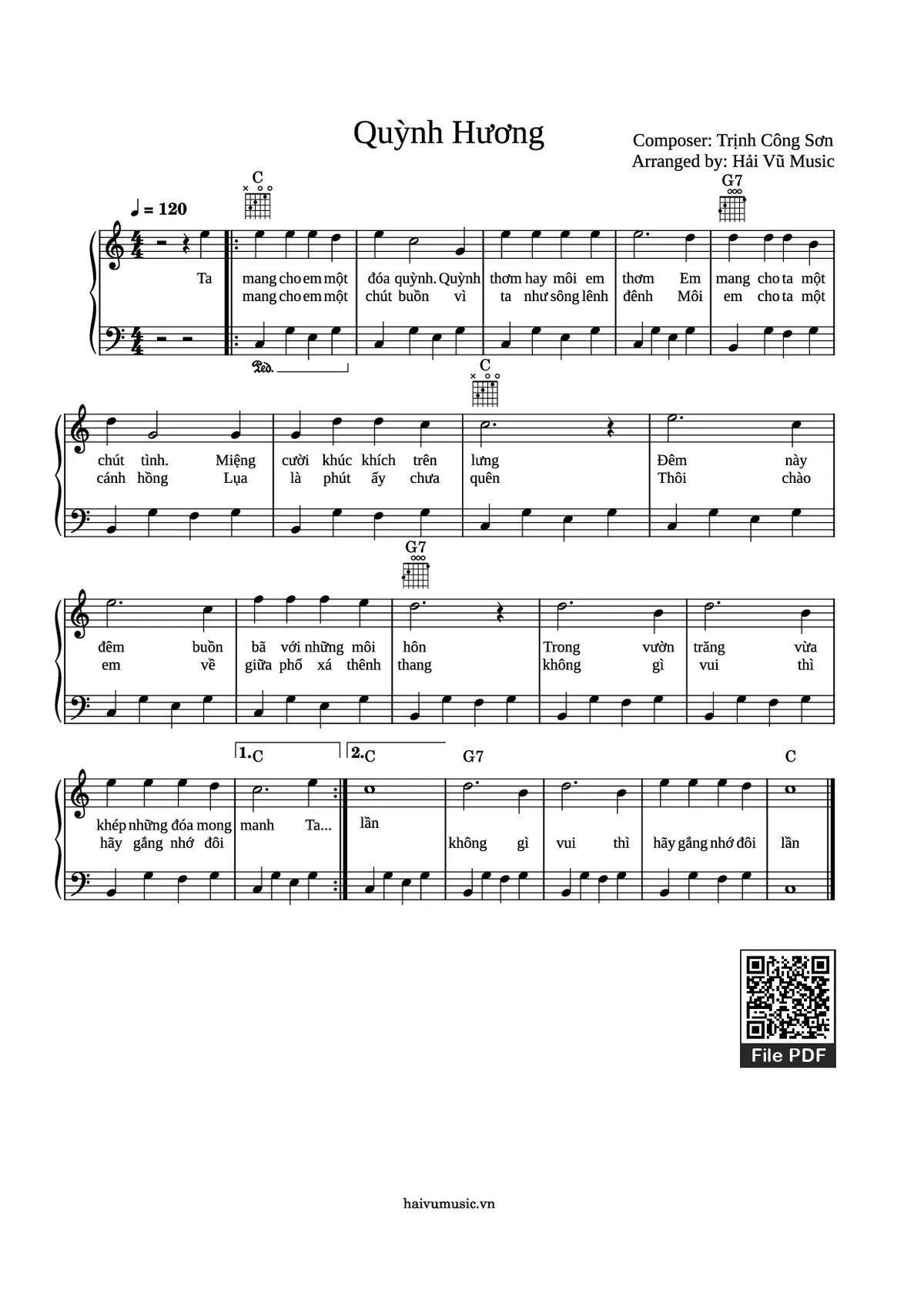 Download and print in PDF or MIDI free sheet music of Quỳnh Hương - Trịnh Công Sơn for Quỳnh Hương by Trịnh Công Sơn arranged by haivumusicgro for Piano (Solo)