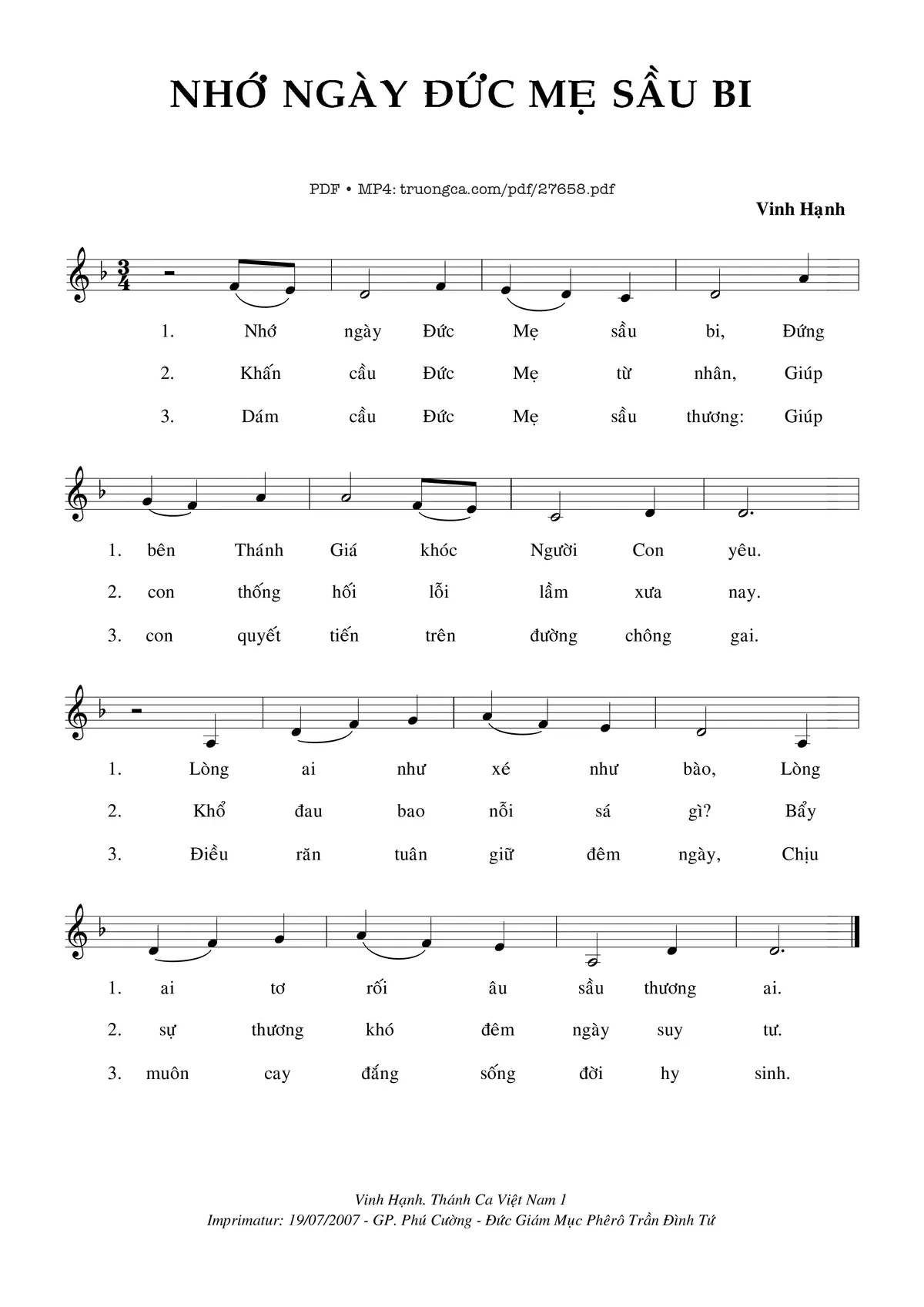 Các sheet PDF tương tự Nhớ Ngày Đức Mẹ Sầu Bi: