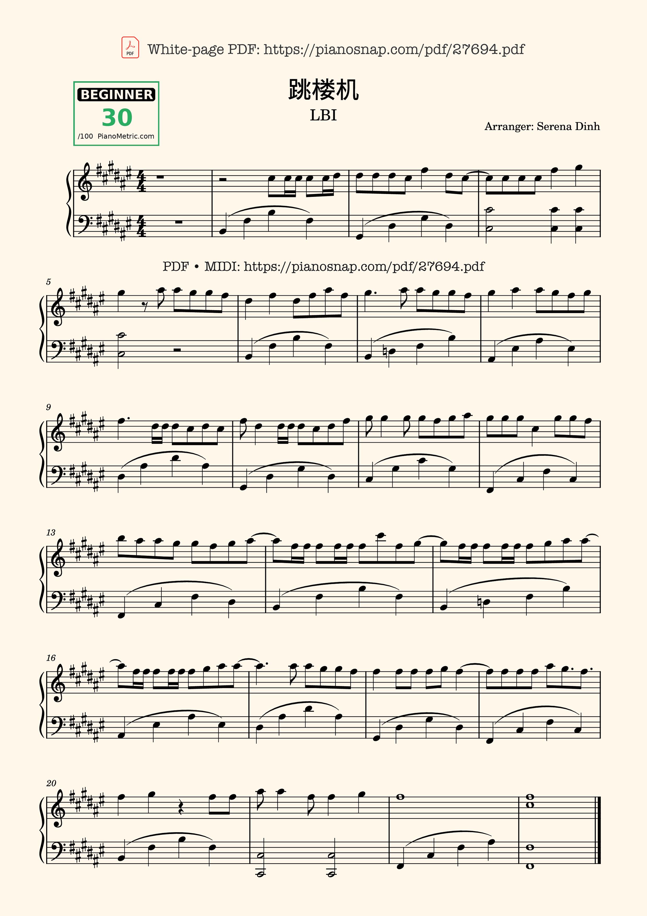 Các sheet PDF tương tự Jumping Machine (跳楼机) – LBI利比 Piano: