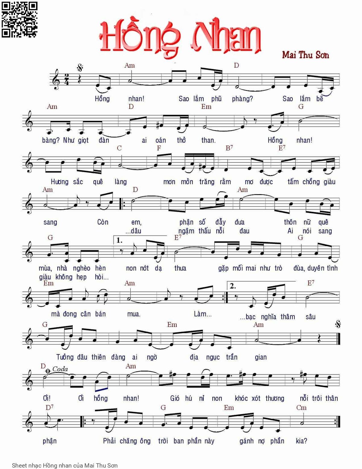 Mai Thu Sơn Hồng nhan Sao lắm phủ phàng Sao lắm bẻ bàng như giọt đàn ai oán thở than [PDF] [Sheet] [Lời H.A] [Mp4/Midi] [Lời bình - giai thoại]