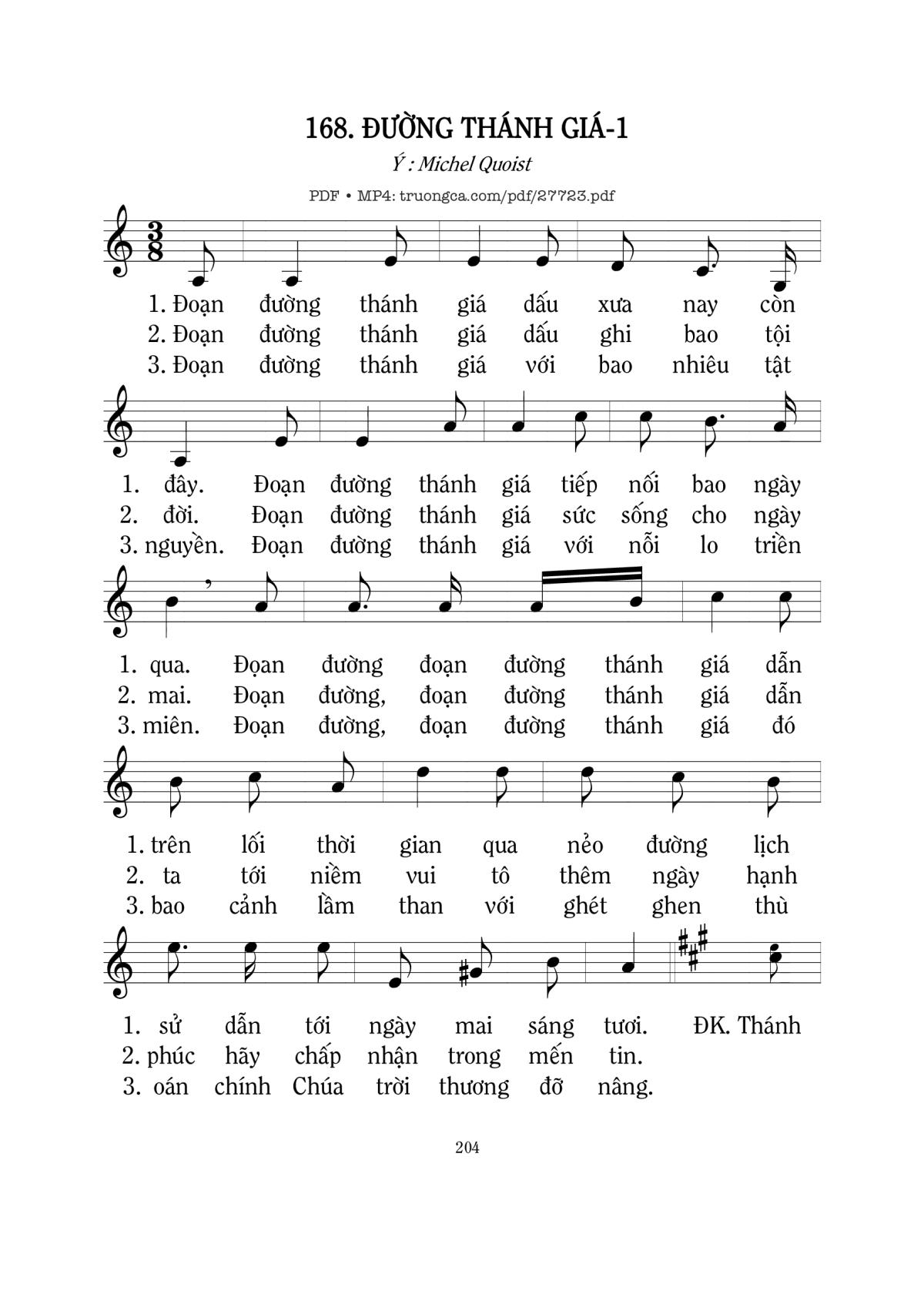 1- Đoạn đường thánh giá dấu xưa nay còn đây. Đoạn đường thánh giá tiếp nối bao ngày qya. Đoạn đường đoạn đường thánh giá dẫn trên lối thời gian qua nẻo đường lịch sử dẫn tới ngày mai sáng tươi.