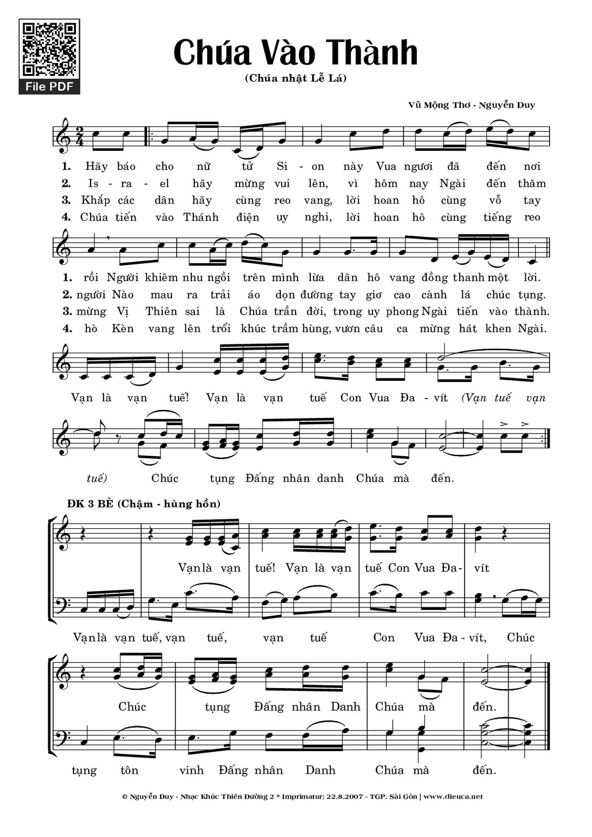 Các sheet PDF cùng tên Chúa Vào Thành (Bè):