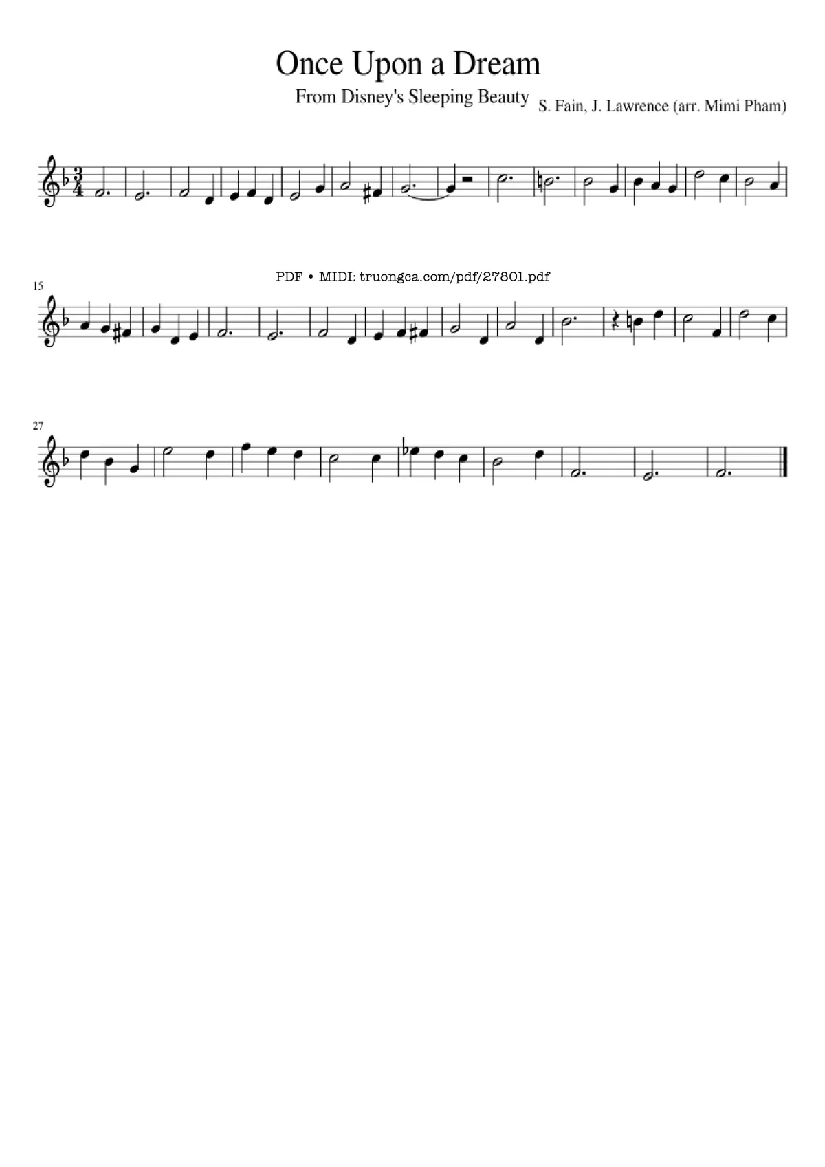 Download and print in PDF or MIDI free sheet music of sleeping beauty - once upon a dream - Misc Cartoons for Sleeping Beauty - Once Upon A Dream by Misc Cartoons arranged by Mimi Pham for Violin