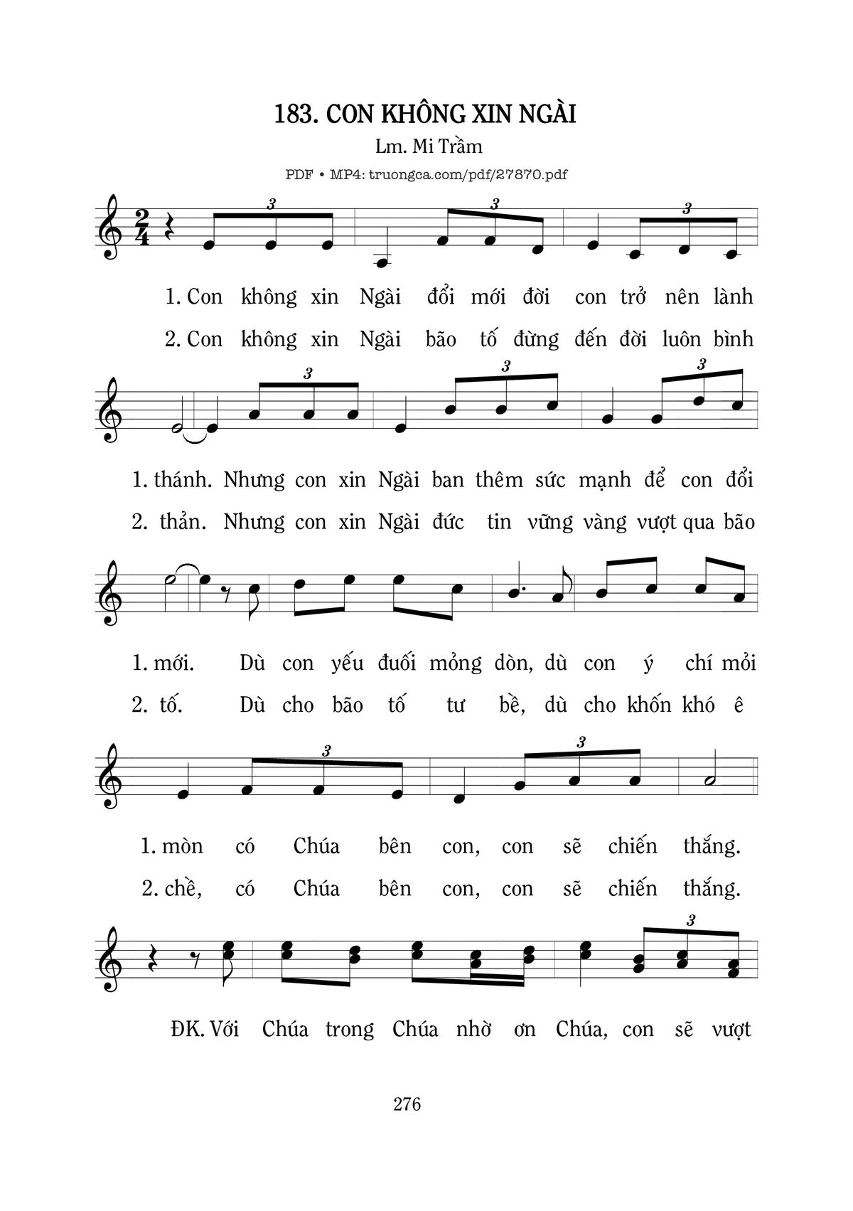 Mi Trầm Con không xin Ngài đổi mới đời con trở nên lành thánh [PDF] [Sheet] [Lời H.A] [Mp4/Midi]
