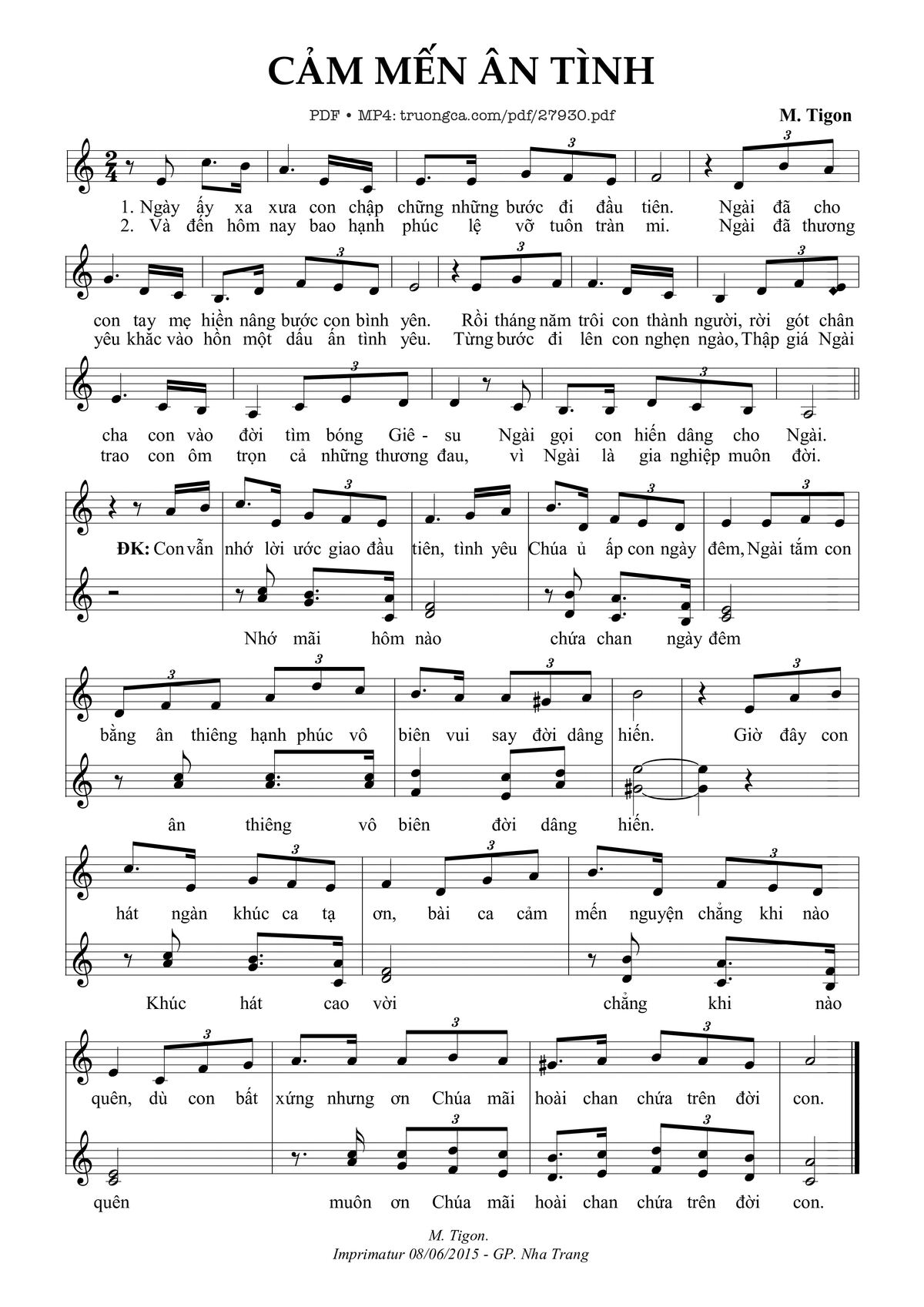 M. Tigôn Ngày ấy xa xưa con chập chững những bước đi đầu tiên [PDF] [Sheet] [Lời H.A] [Mp4/Midi]