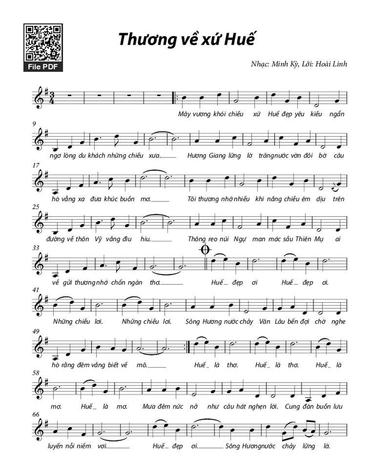 Các sheet PDF tương tự Thương về xứ Huế: