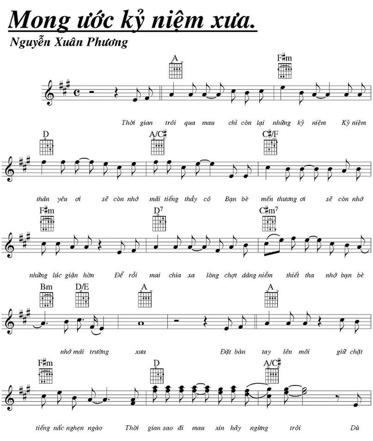 Sheet Mong Ước Kỉ Niệm Xưa PDF, hợp âm