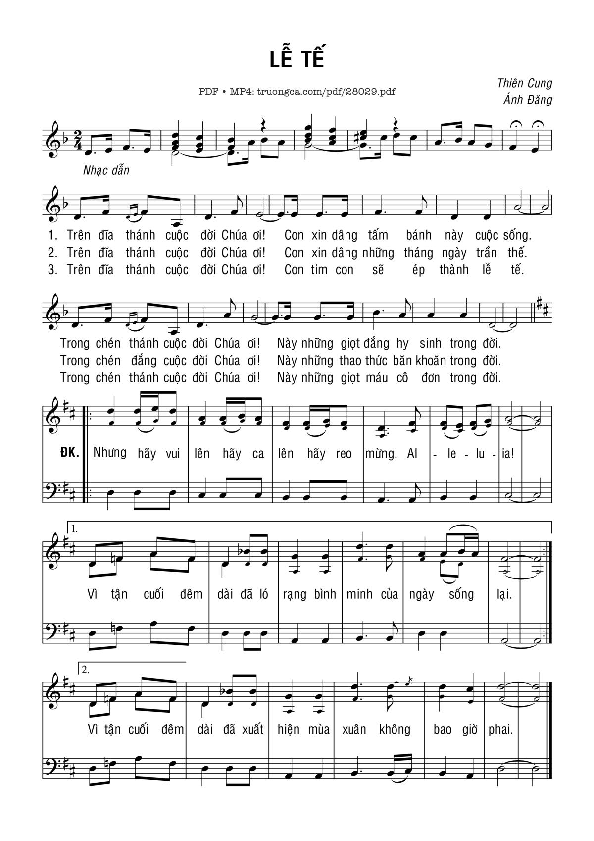 Phần nghe hát Lễ Tế (Ánh Đăng &Amp; Thiên Cung) được nhúng từ Youtube, Musescore hoặc link ngoài và chịu sự kiểm soát bản quyền của bên thứ ba đó, vì vậy có thể bị xóa hoặc chèn quảng cáo bất kỳ lúc nào. Nếu bạn không nghe - xem được ca sĩ hát tức là đã bị Youtube hoặc Musescore kiểm soát.