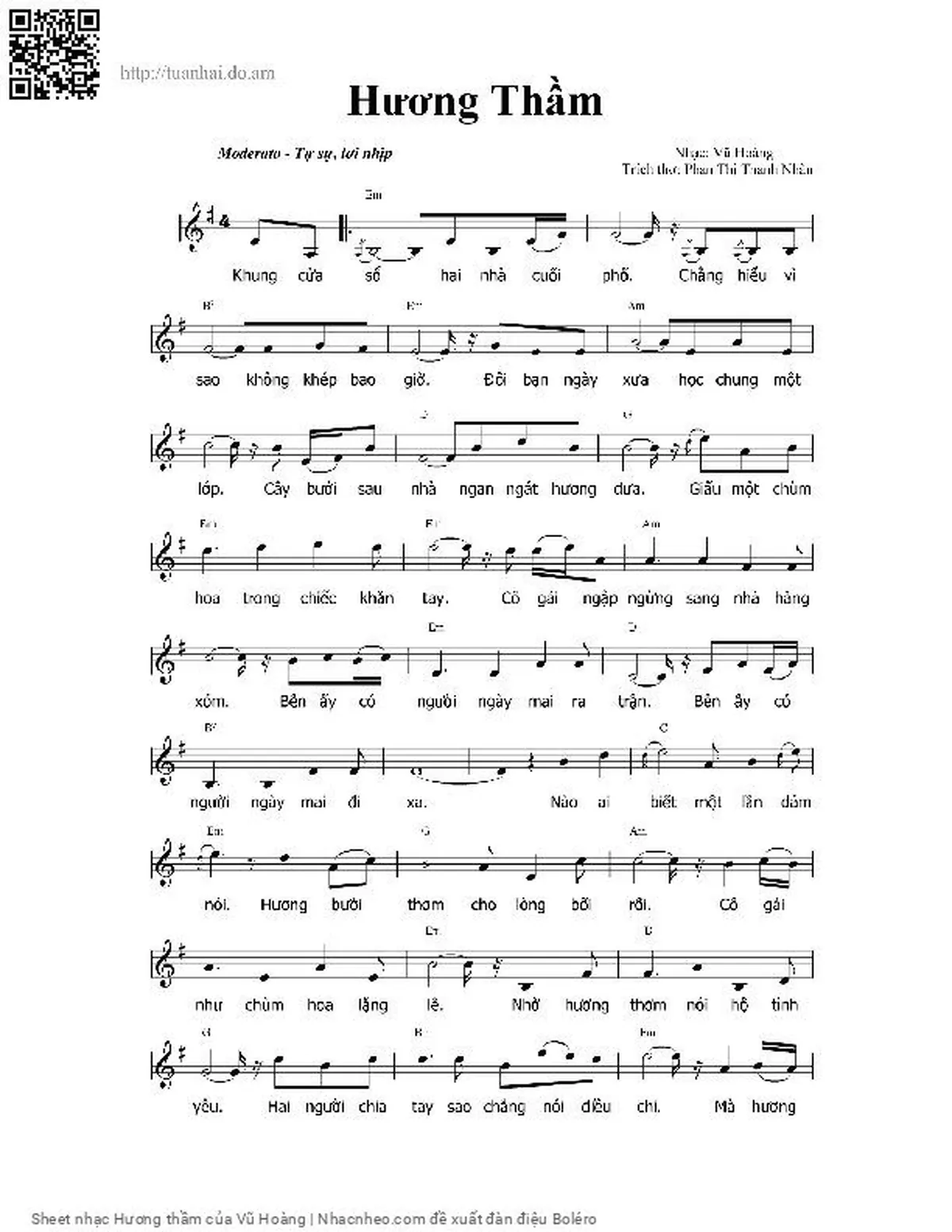 Chọn nút dấu + để tăng tông lên nửa cung, nút dấu - để giảm tông xuống nửa cung. Rê chuột vào hợp âm để xem các thế bấm hợp âm của bài hát Hương thầm.