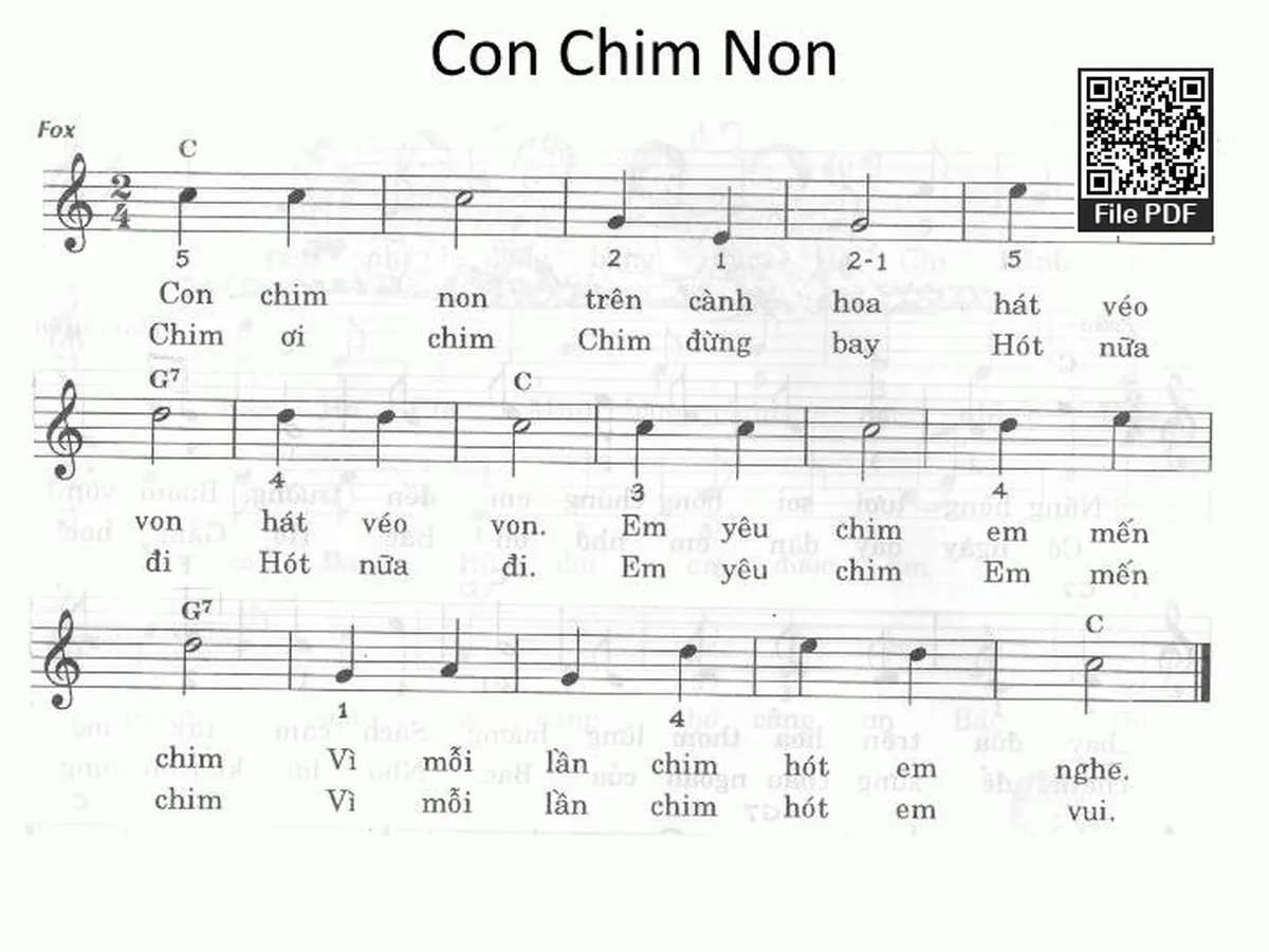 Các sheet PDF tương tự Con Chim Non:
