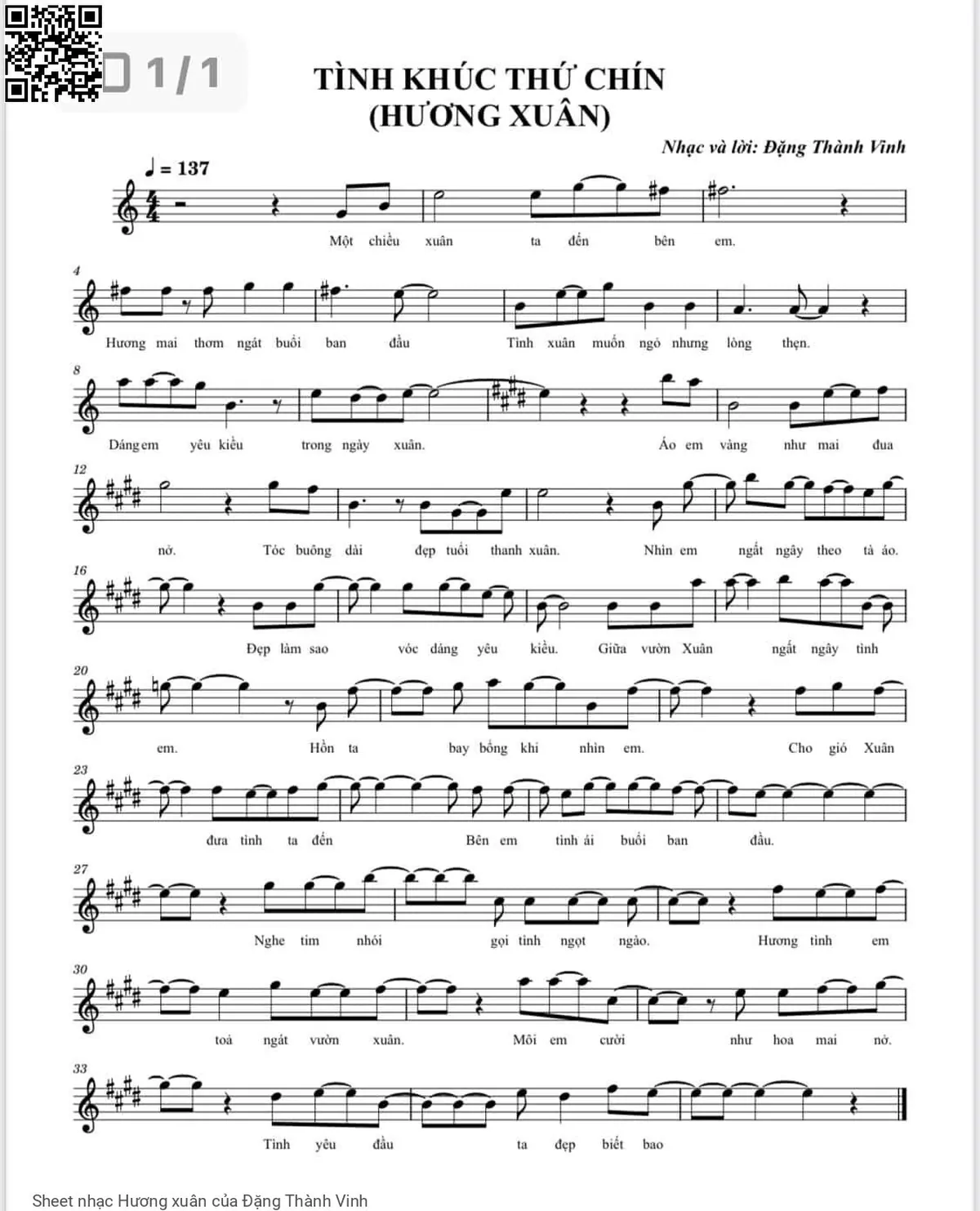 Đặng Thành Vinh Một chiều xuân ta đến bên em Hương mai thơm ngát buổi ban đầu [PDF] [Sheet] [Lời H.A] [Mp4/Midi]