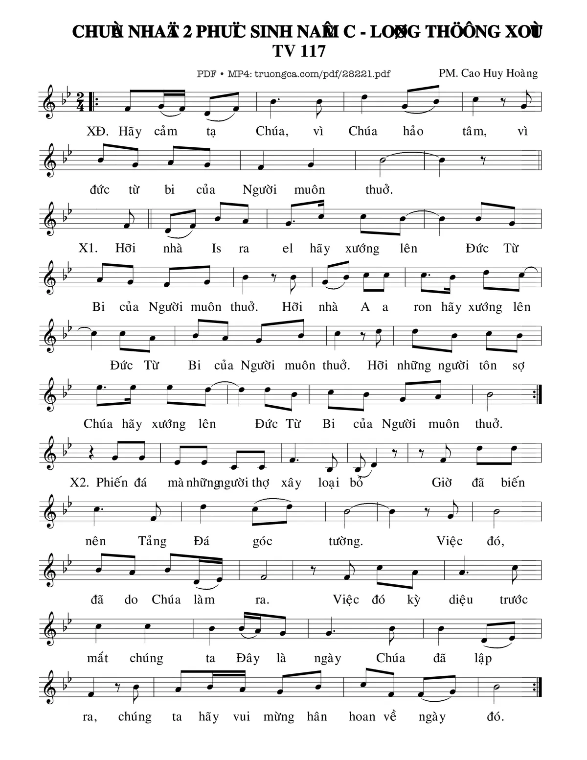 Các sheet PDF tương tự Thánh Vịnh 117, Chúa Nhật 2C Phục Sinh:
