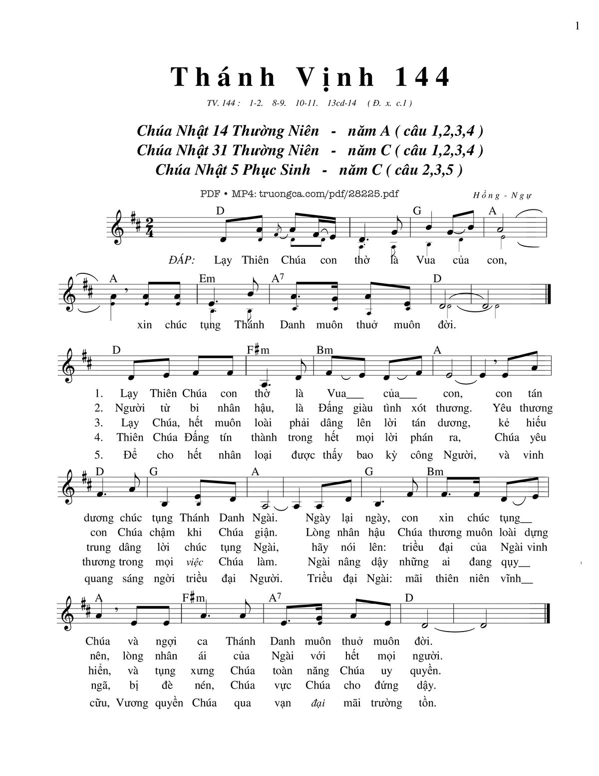 Các sheet PDF tương tự Thánh Vịnh 144, Chúa Nhật 5C Phục Sinh:
