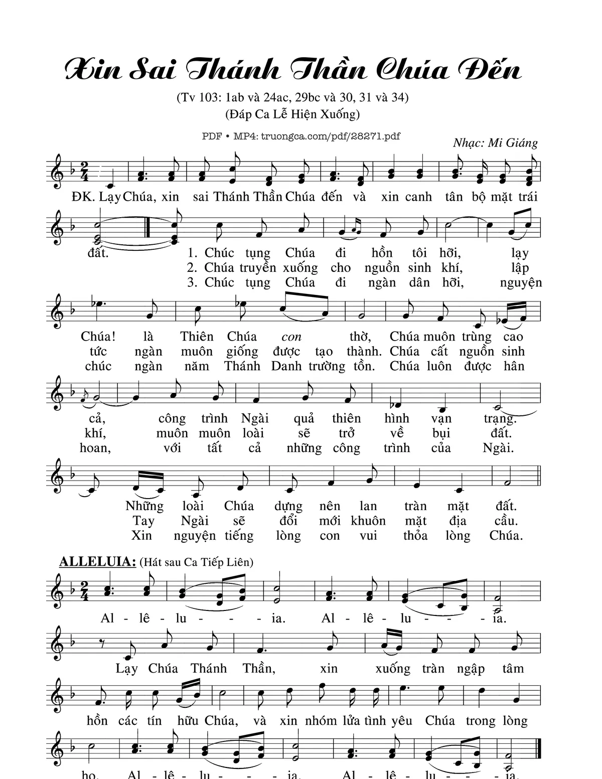 Các sheet PDF tương tự Thánh Vịnh 103, Xin Sai Thánh Thần Chúa Đến: