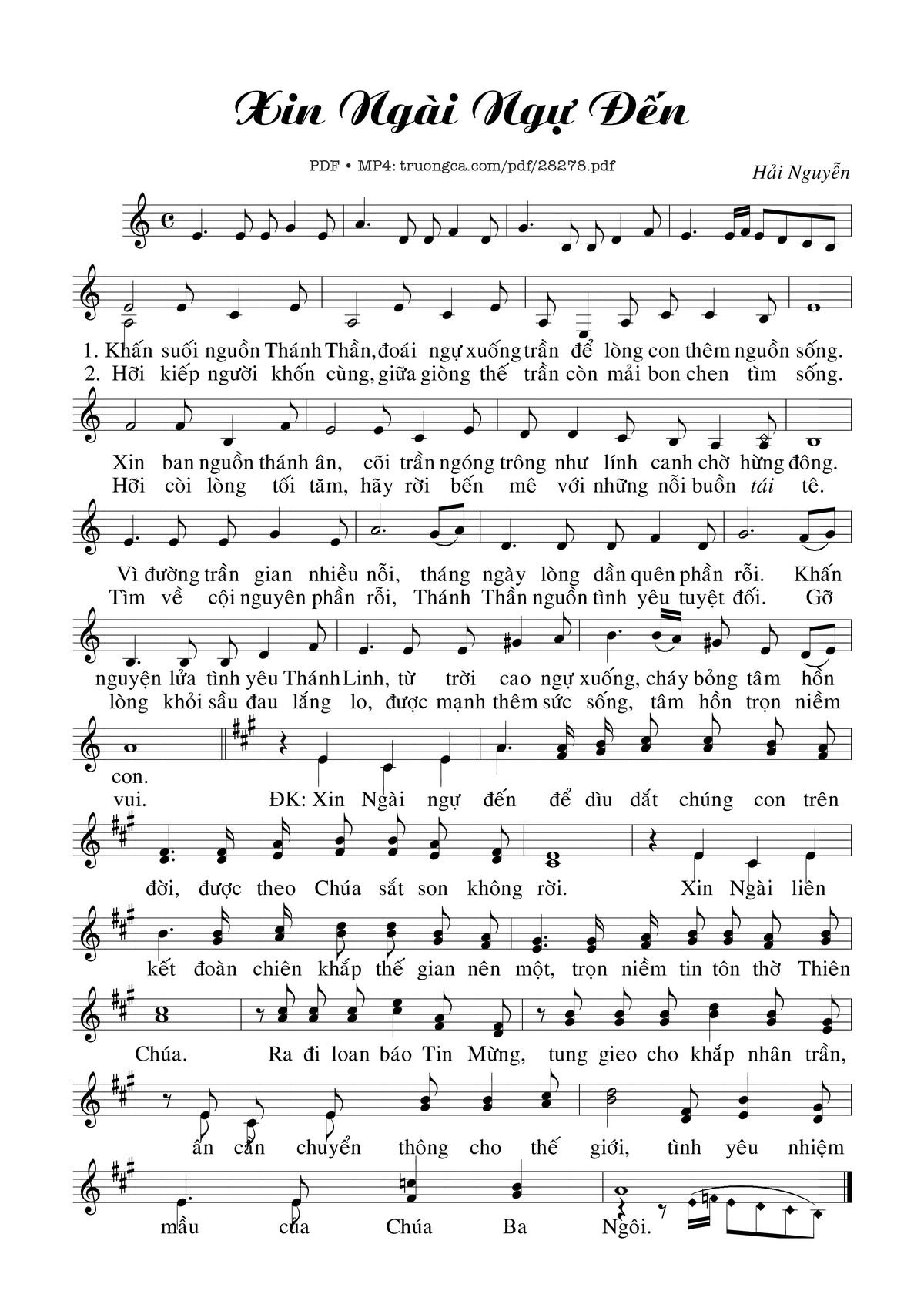 Hải Nguyễn Khấn suối nguồn Thánh Thần đoái ngự xuống trần để lòng con thêm nguồn sống [PDF] [Sheet] [Lời H.A] [Mp4/Midi]