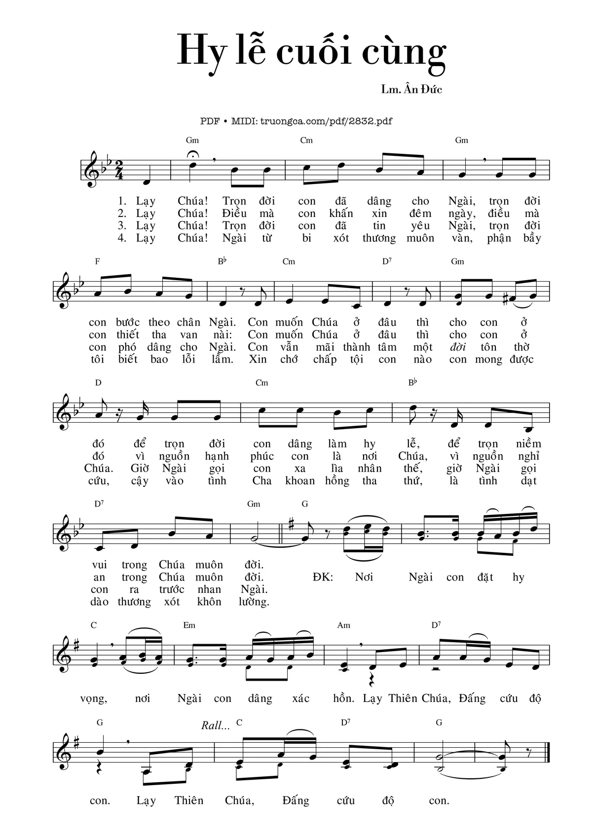 Lm. Ân Đức Lạy Chúa trọn đời con đã dâng cho Ngài [PDF] [Sheet] [Lời H.A] [Mp4/Midi]