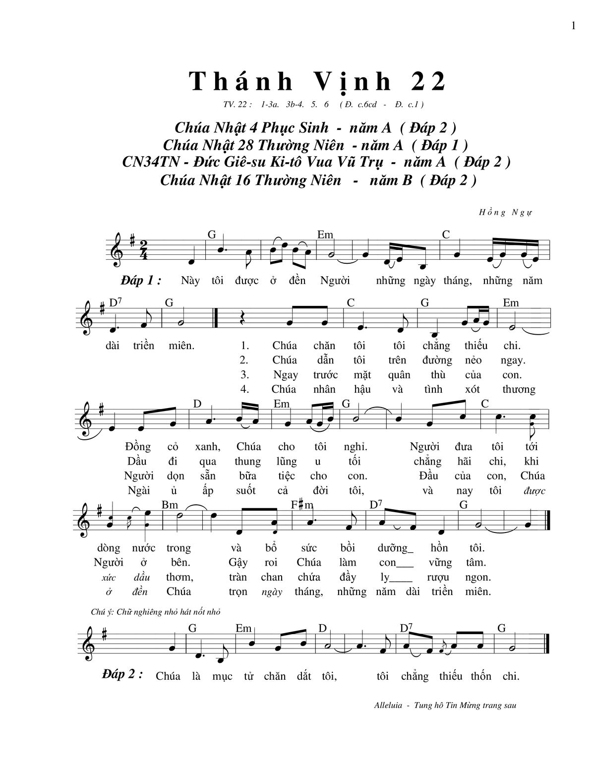 Các sheet PDF tương tự Thánh Vịnh 22, Chúa Nhật 4A Phục Sinh:
