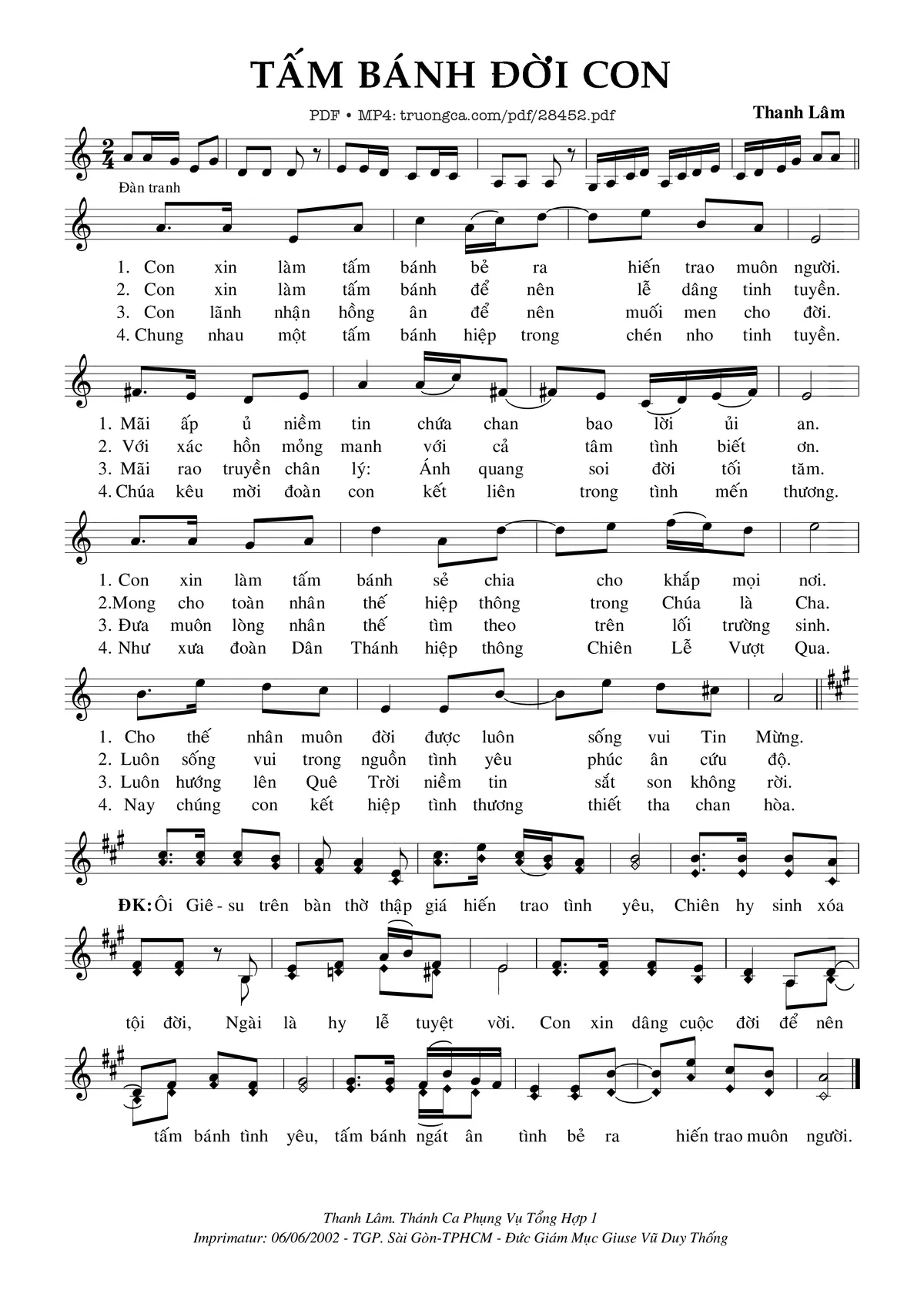 Thanh Lâm Song Mộc Con xin làm tấm bánh bẻ ra hiến trao muôn người [PDF] [Sheet] [Lời H.A] [Mp4/Midi]