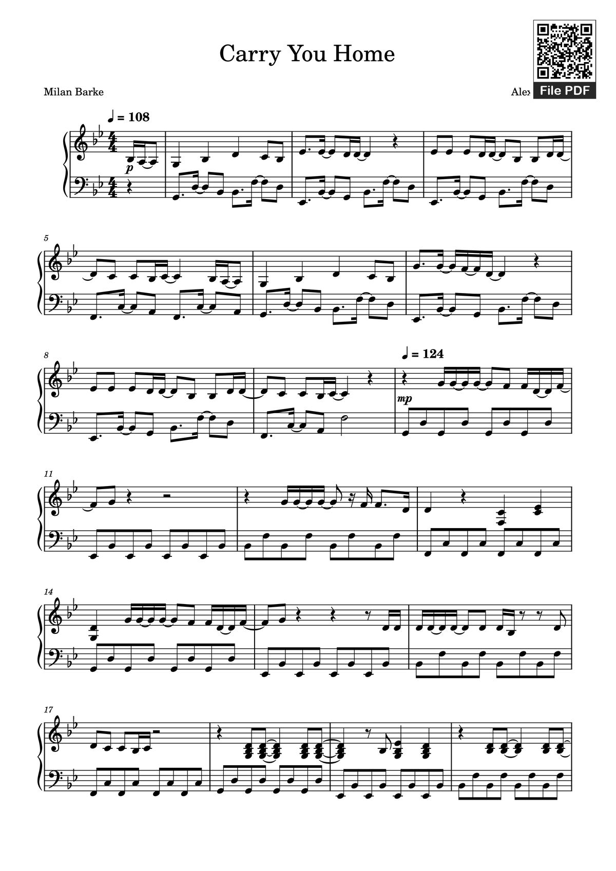 Download and print in PDF or MIDI free sheet music of Carry You Home - Alex Warren for Carry You Home by Alex Warren arranged by Milan3,1415 for Piano (Solo)