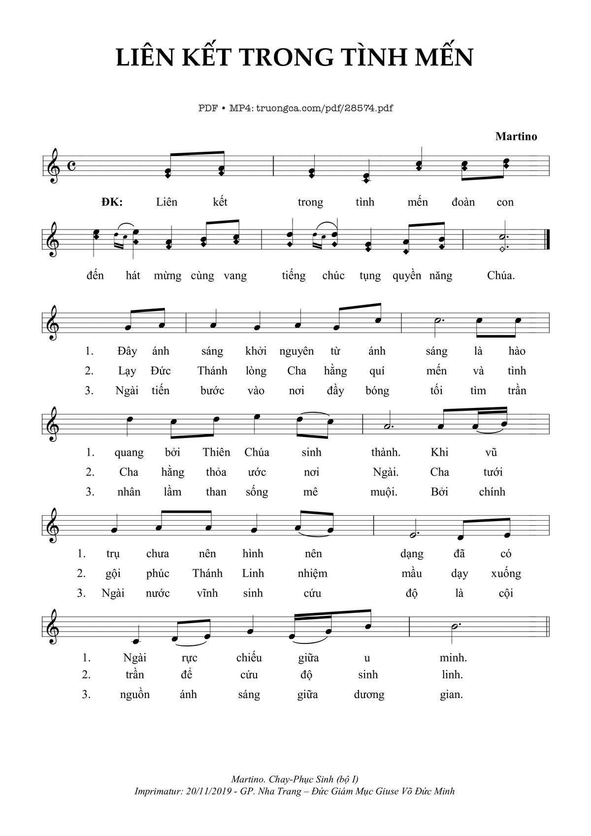 Martino Liên kết trong tình mến đoàn con đến hát mừng cùng vang tiếng chúc tụng quyền năng Chúa [PDF] [Sheet] [Lời H.A] [Mp4/Midi]