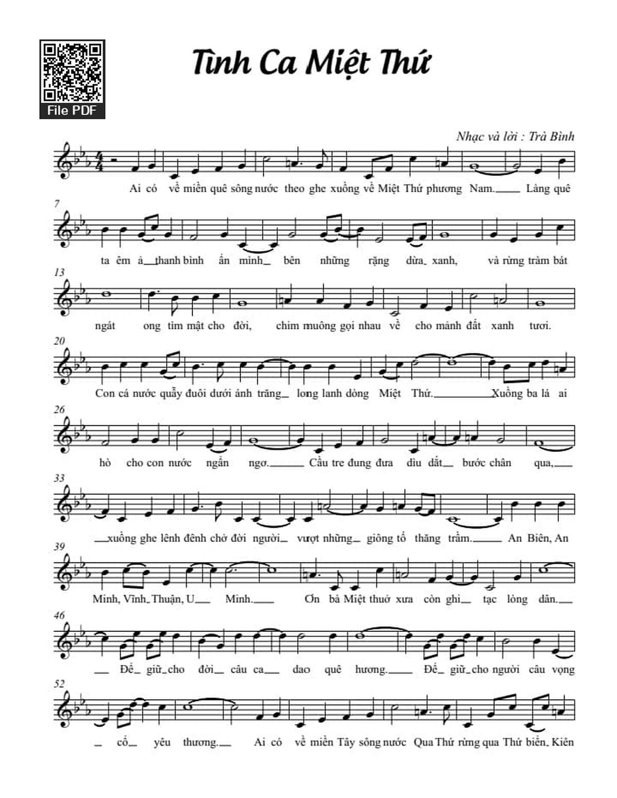 Trà Bình Ai có về miền quê sông nước theo ghe xuồng về Miệt Thứ phương Nam [PDF] [Sheet] [Lời H.A] [Mp4/Midi]